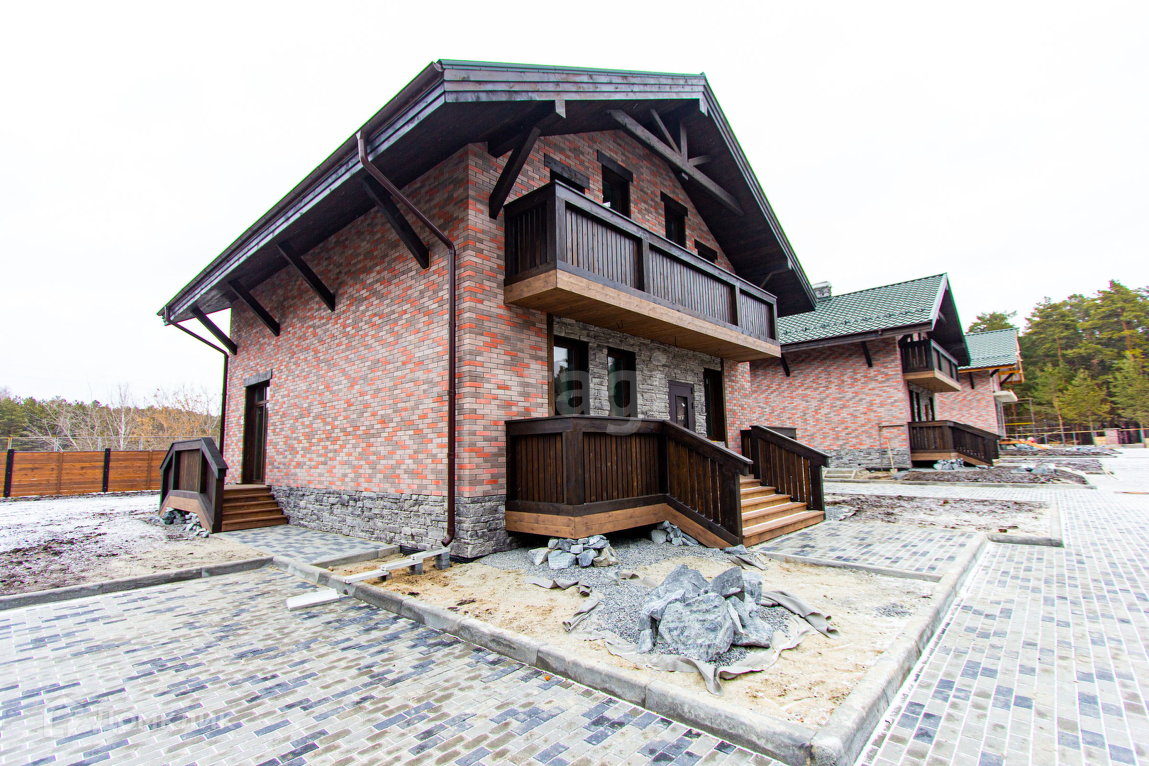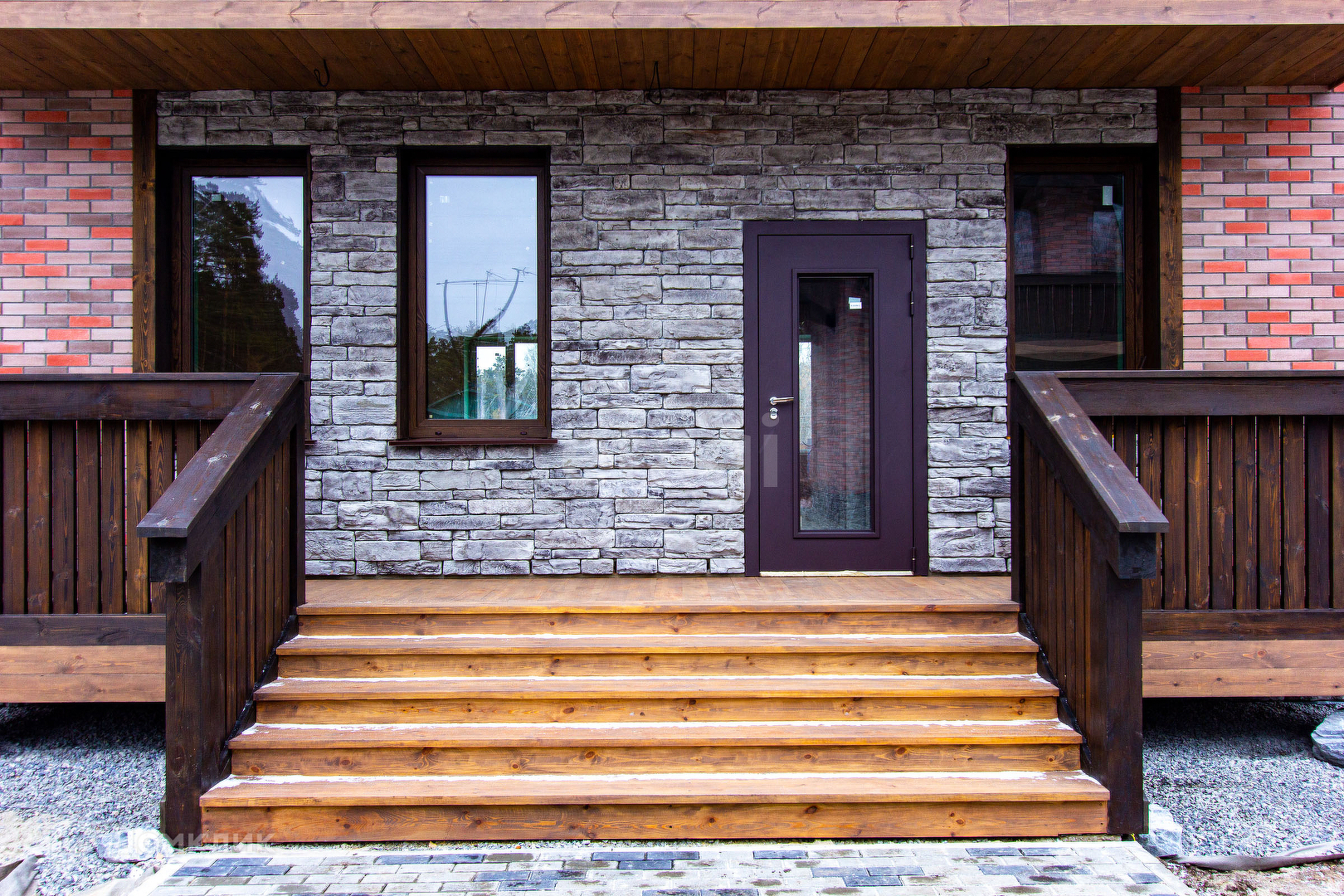 Построен из кирпича по европейскому проекту. Качественные строительные и отделочные материалы, увеличенные кашированные окна, балкон. Комбинированная отделка фасада: облицовочный кирпич, декоративный камень, темное дерево.