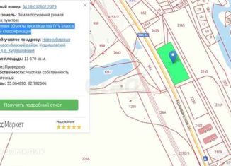 Продам земельный участок промышленного назначения площадью 1,16Га на 1ой линии. Участок находится на Колыванском шоссе между Новосибирском и п.Кудряшовский. Разрешенное использование: промышленные объекты производства IV-V класса санитарной классификации. Коммуникации: газ, электроэнергия, центральное водоснабжение проходят рядом с участком. Участо... |
