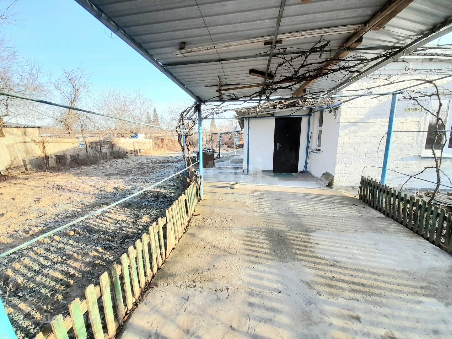 Фасад 16 метров, навес для машины. Двор асфальтированный. Два комнаты, ванна, прихожая, кухня,кладовка. Все коммуникации в доме. Ровный участок, не топит.