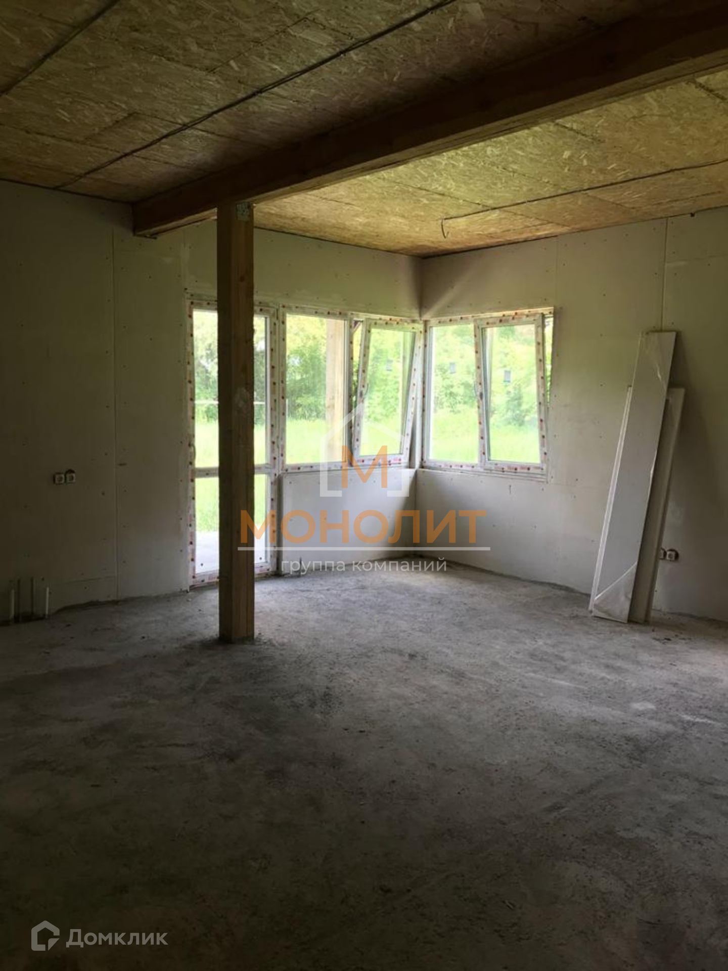 Установлен забор с раздвижными воротами , площадка для двух машин . На втором этаже мансардная комната ( 25 км.м, не входит проектную площадь), предчистовая отделка, тёплый пол по всему периметру дома .