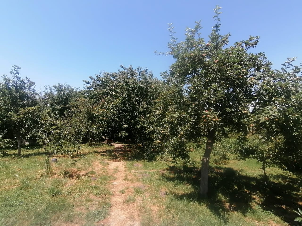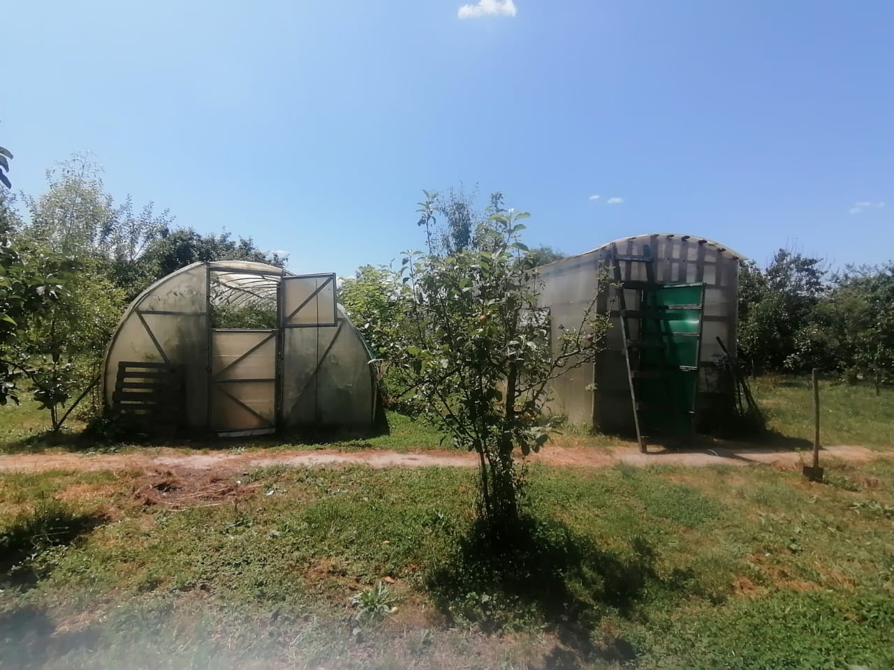Перед домом палисадник увитый виноградом, за домом 4 зоны: 1. отдыха, 2. сад с огородом, садом и теплицами, 3. За забором хоз. постройки для ведения домашнего хозяйства и содержания дом. птицы и мелкого скота, 4. Сад, с выходом на трассу, ведущую в сторону Краснодара (35 км) или в Саратовскую (5 км), поэтому возможно дополнительно рассматривать и как развитие бизнеса.