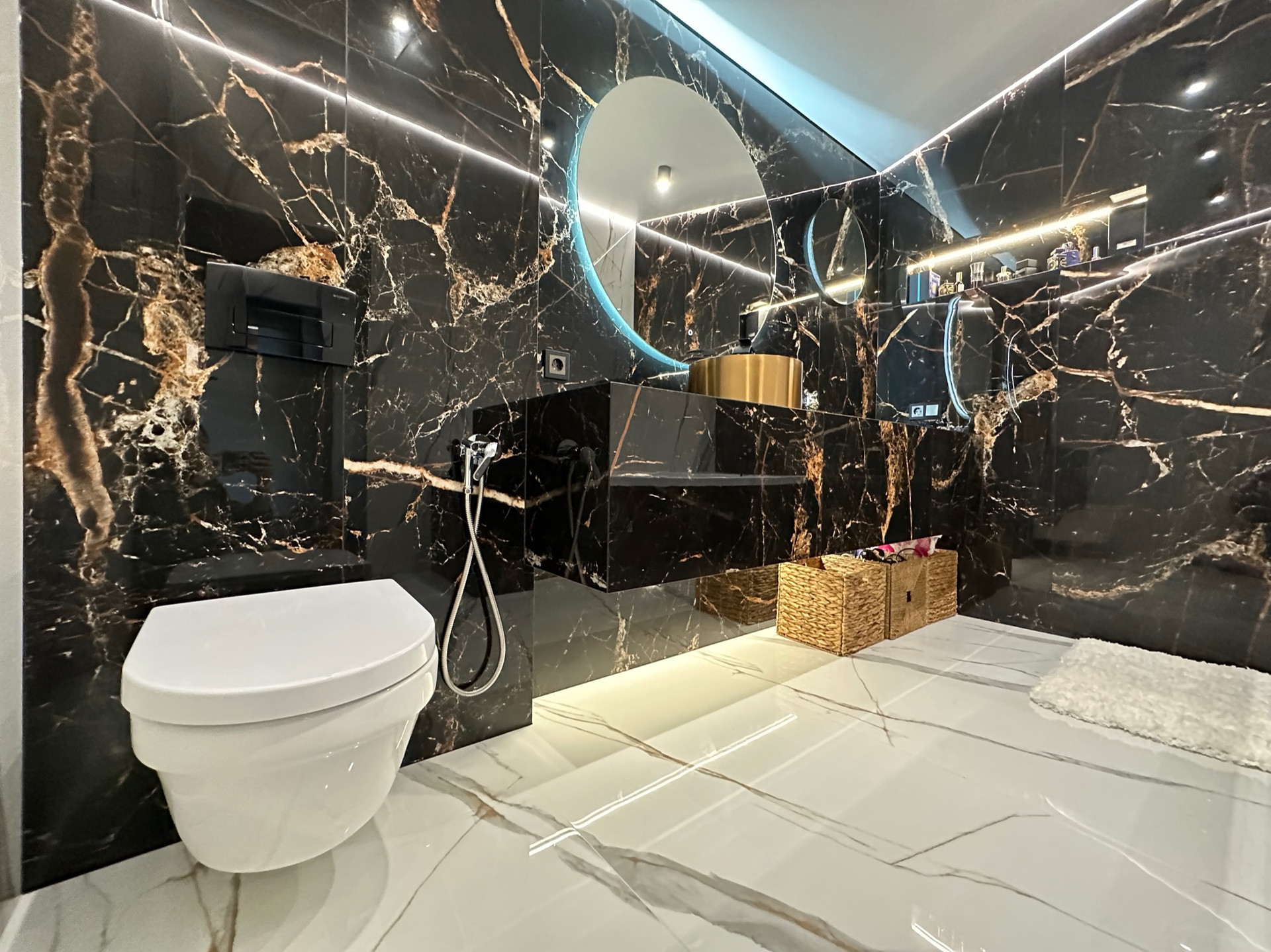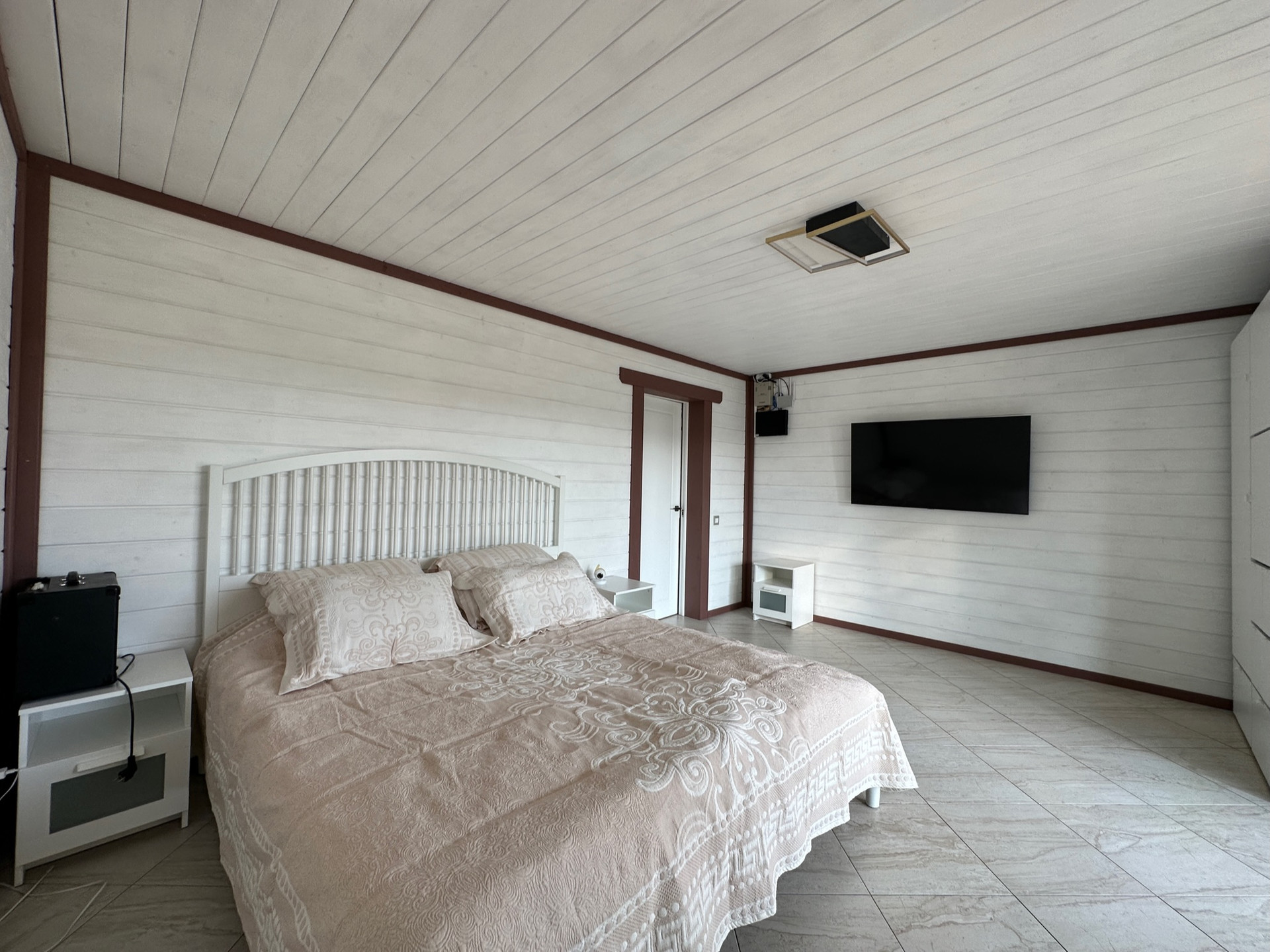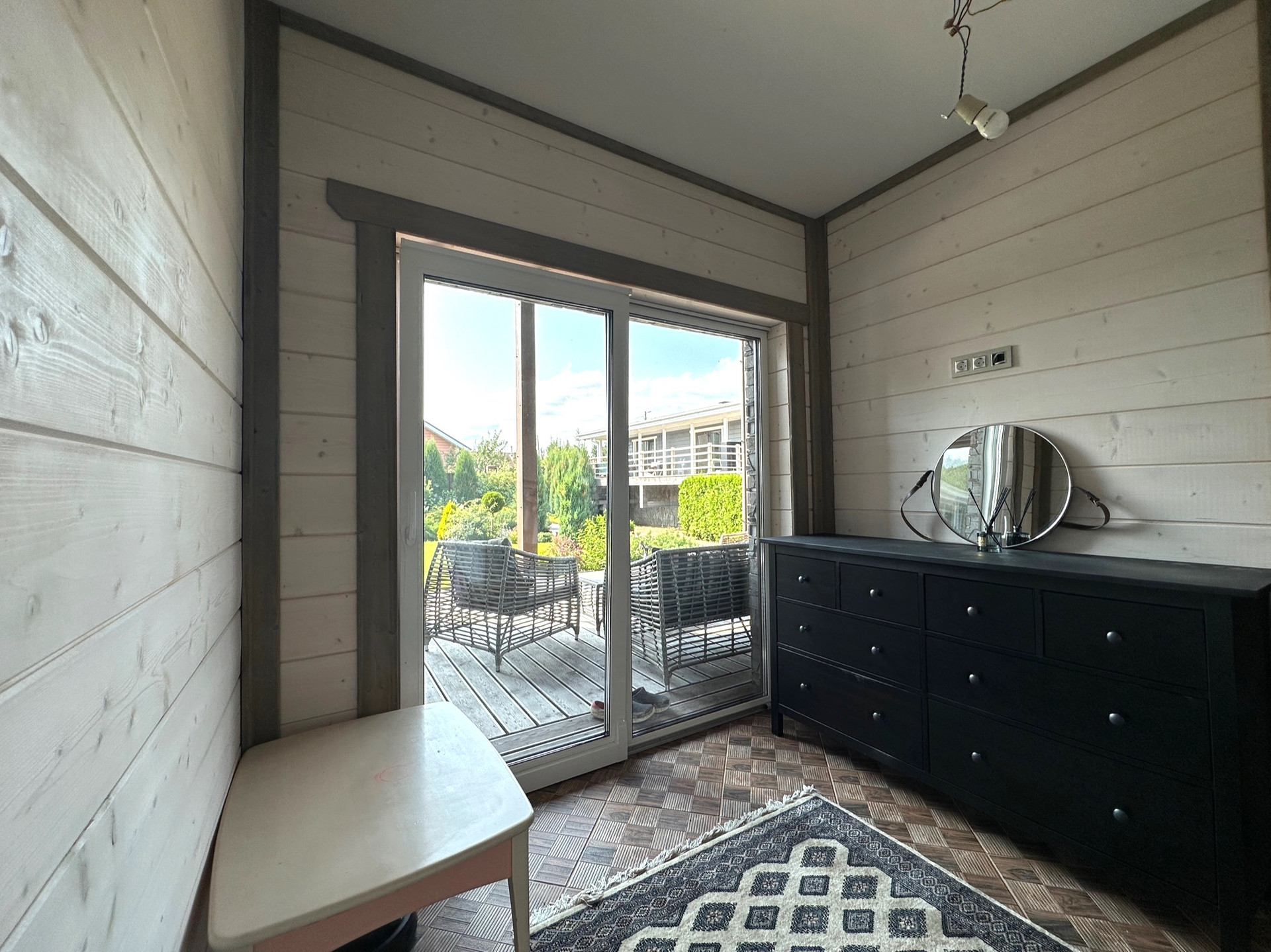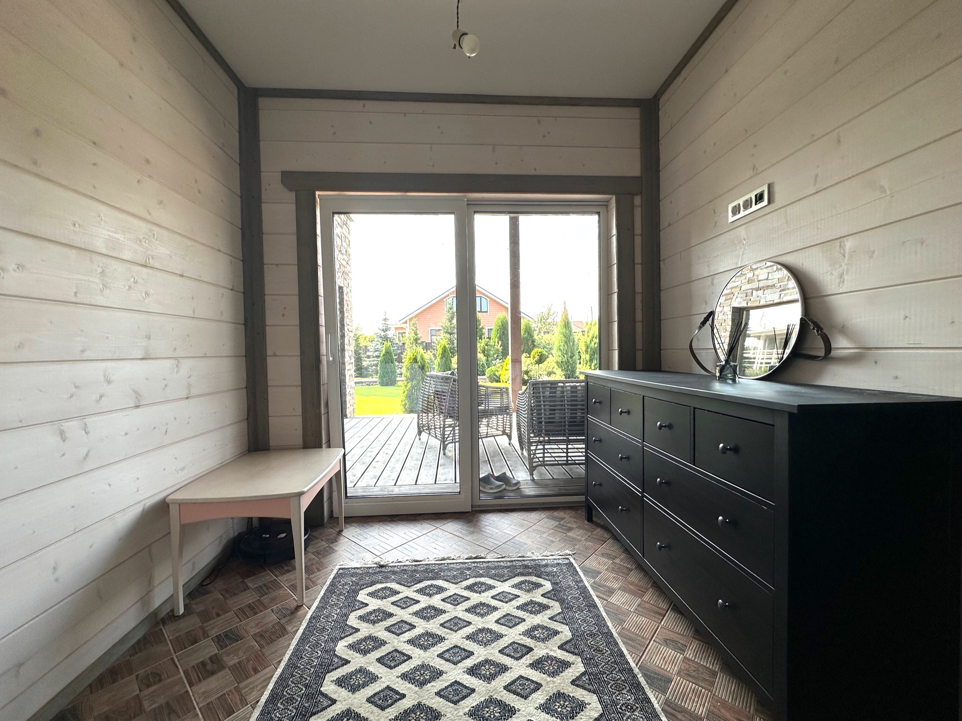 В отделке использовались: паркетная доска, керамическая плитка, стены имитация брус, современная сантехника и освещение.