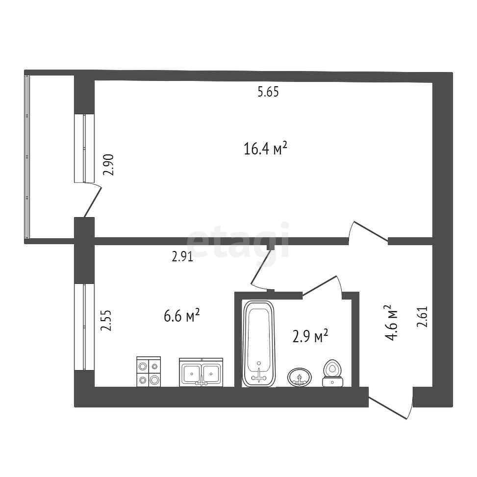-Уютная комната 16.4 кв.м объединена с кухней 6.6 кв.м. Выход с комнаты на застекленный балкон.