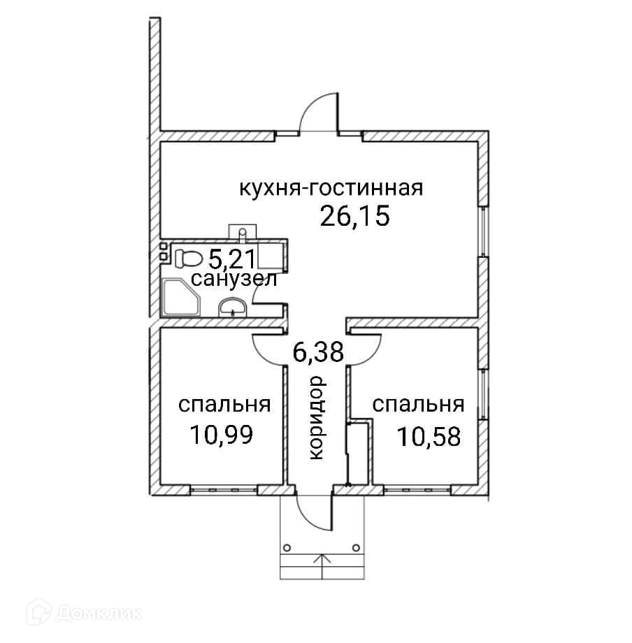 построен 2022 году, две спальни, кухня гостиная, санузел и прихожая.