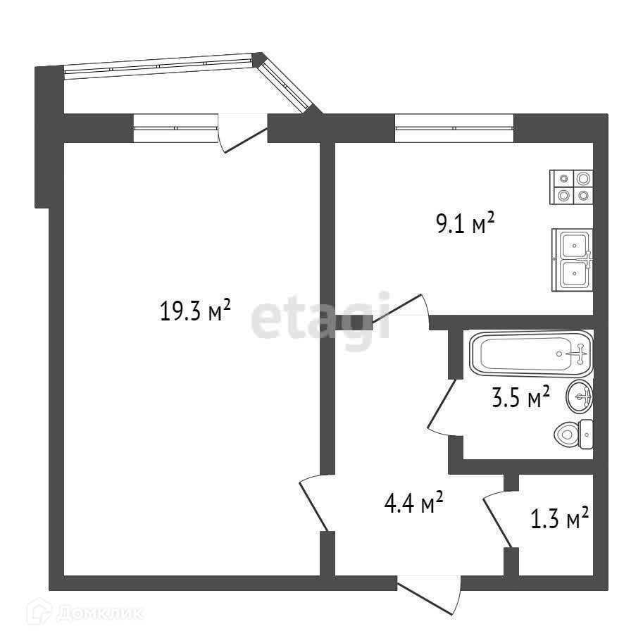 Общая площадь 37.6 м², из них 19,3 м² являются жилой частью.