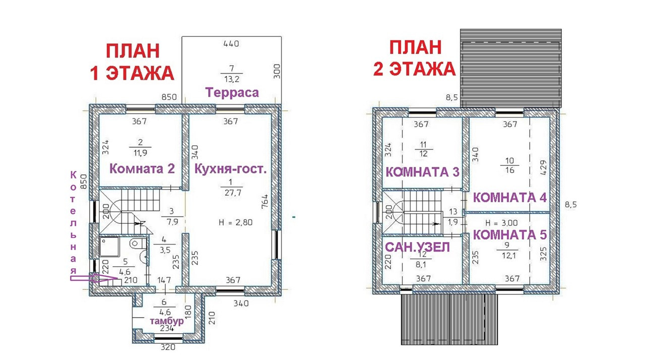 В доме 11 помещений из них 5 жилых комнат: 4 спальни, кабинет, гостиная с кухонной зоной и выходом во двор, 2 санузла, котельная - бойлерная и прихожая, крытая терраса. Большой теплый тамбур. Два санузла на каждом этаже. Отдельное помещение котельной-бойлерной.