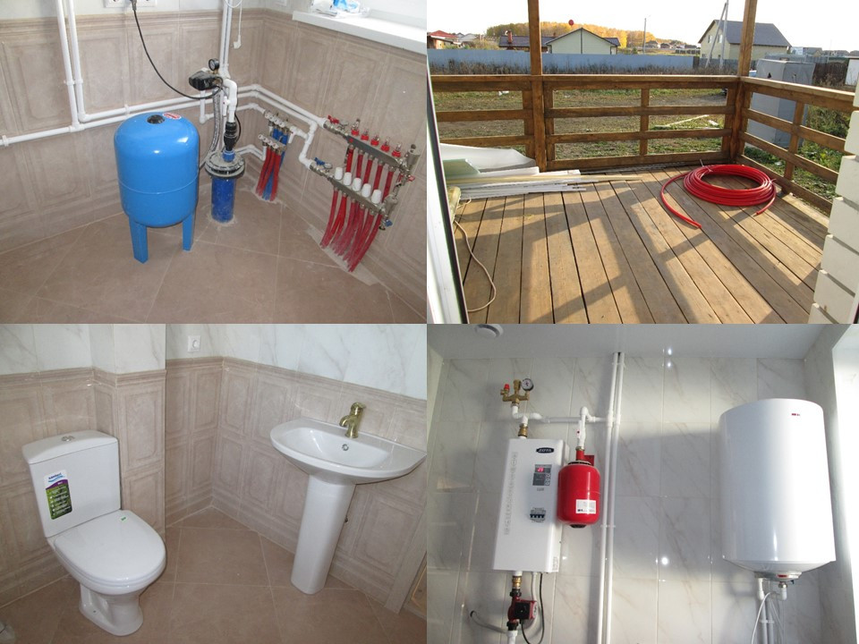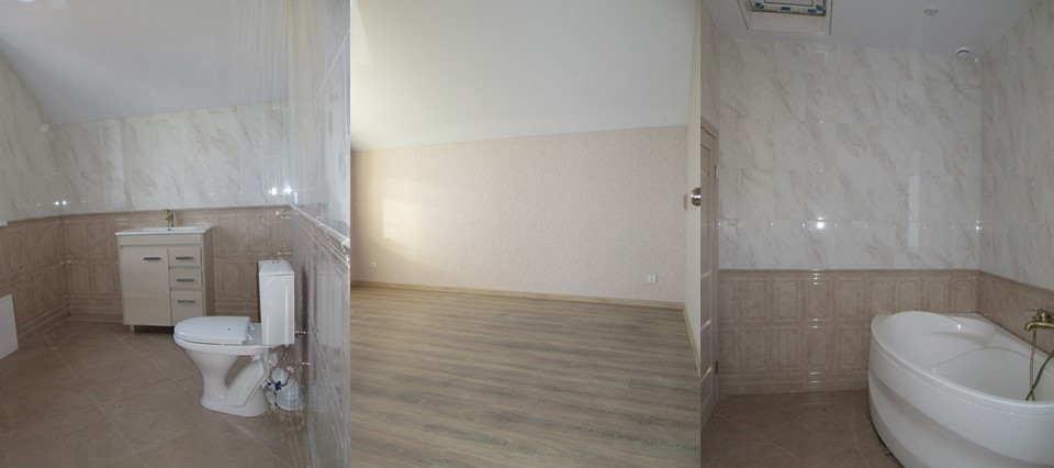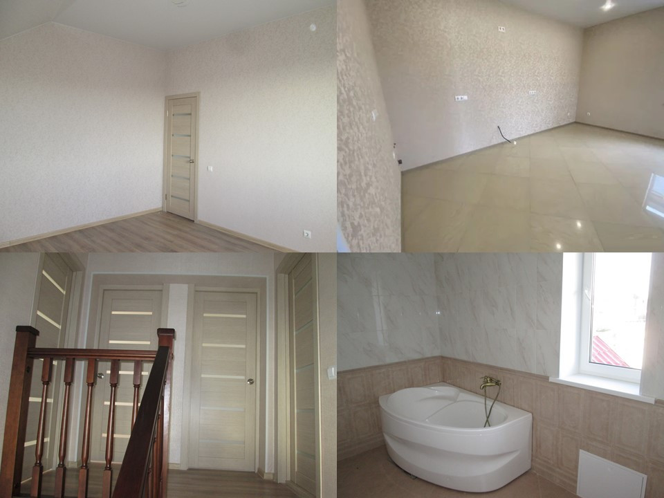 Скважина (60 метров), септик (8 кубов), горячая вода подключены к коммуникациям дома. Отделка под чистовую (ВОЗМОЖНА ОТДЕЛКА ПОД КЛЮЧ), при отделке используются  современные качественные материалы: натяжные потолки (Бельгия), ламинат (немецкий), обои (итальянские), большие пластиковые окна (изготовлены по австрийской технологии), на входе стальная сейф-дверь.