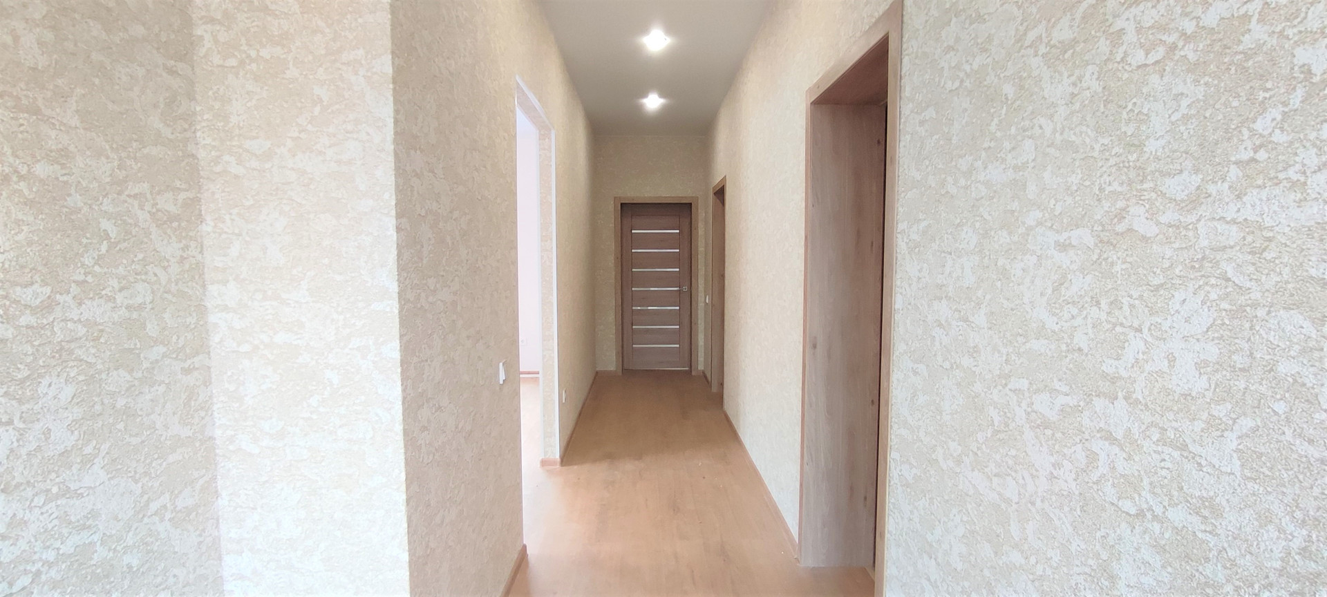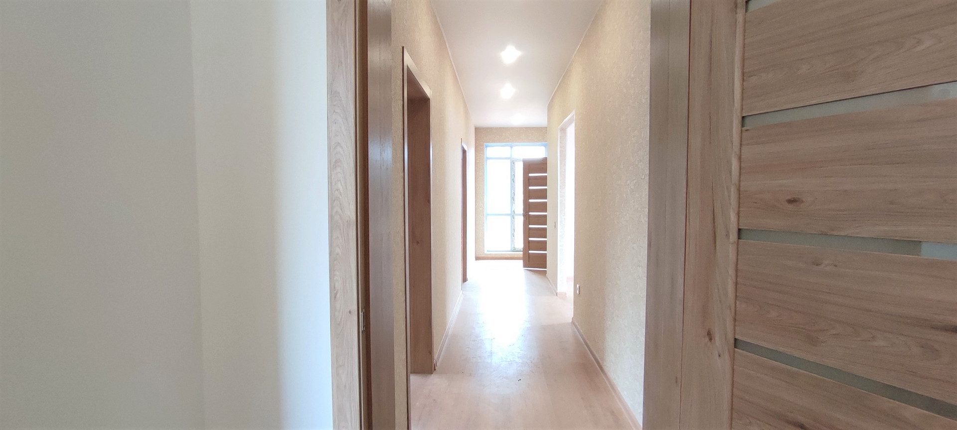 Отделка под ключ, использованы современные качественные материалы: натяжные потолки, керамогранит в коридоре, прихожей зоне, зоне котельной, в кухне-гостиной, в остальных помещениях ламинат 33-го класса, пластиковые окна увеличенного размера, на входе стальная сейф-дверь.