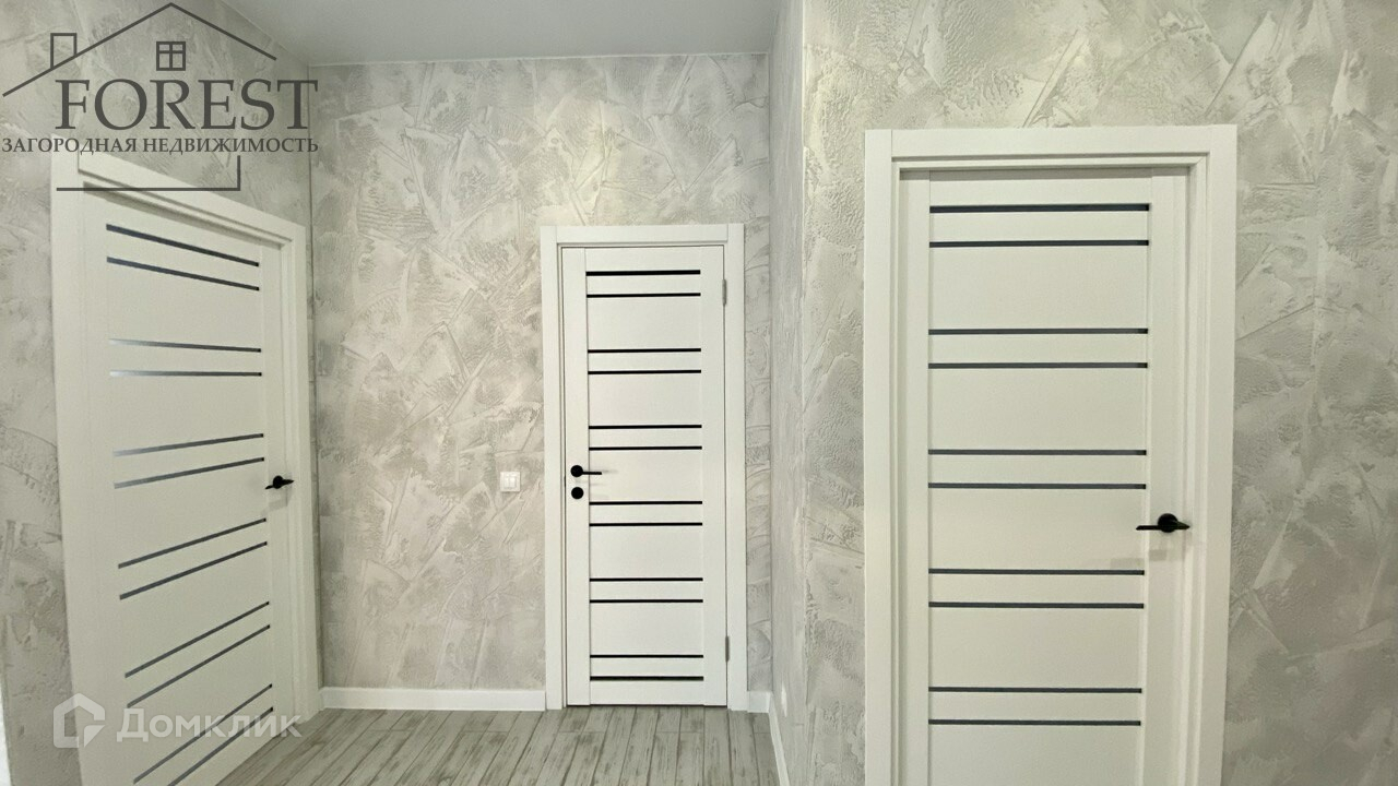 на стенах современные обои, розетки, выключатели, разводка под ТВ санузел в кафеле+сантехника натяжной потолок с точечными светильниками по всему дому на полу керамогранит межкомнатные двери: белые матовые с черной фурнитурой пластиковые окна: 70 пятикамерный профиль входная дверь: с терморазрывом, утепленная электрический котёл водонагреватель покраска фасада