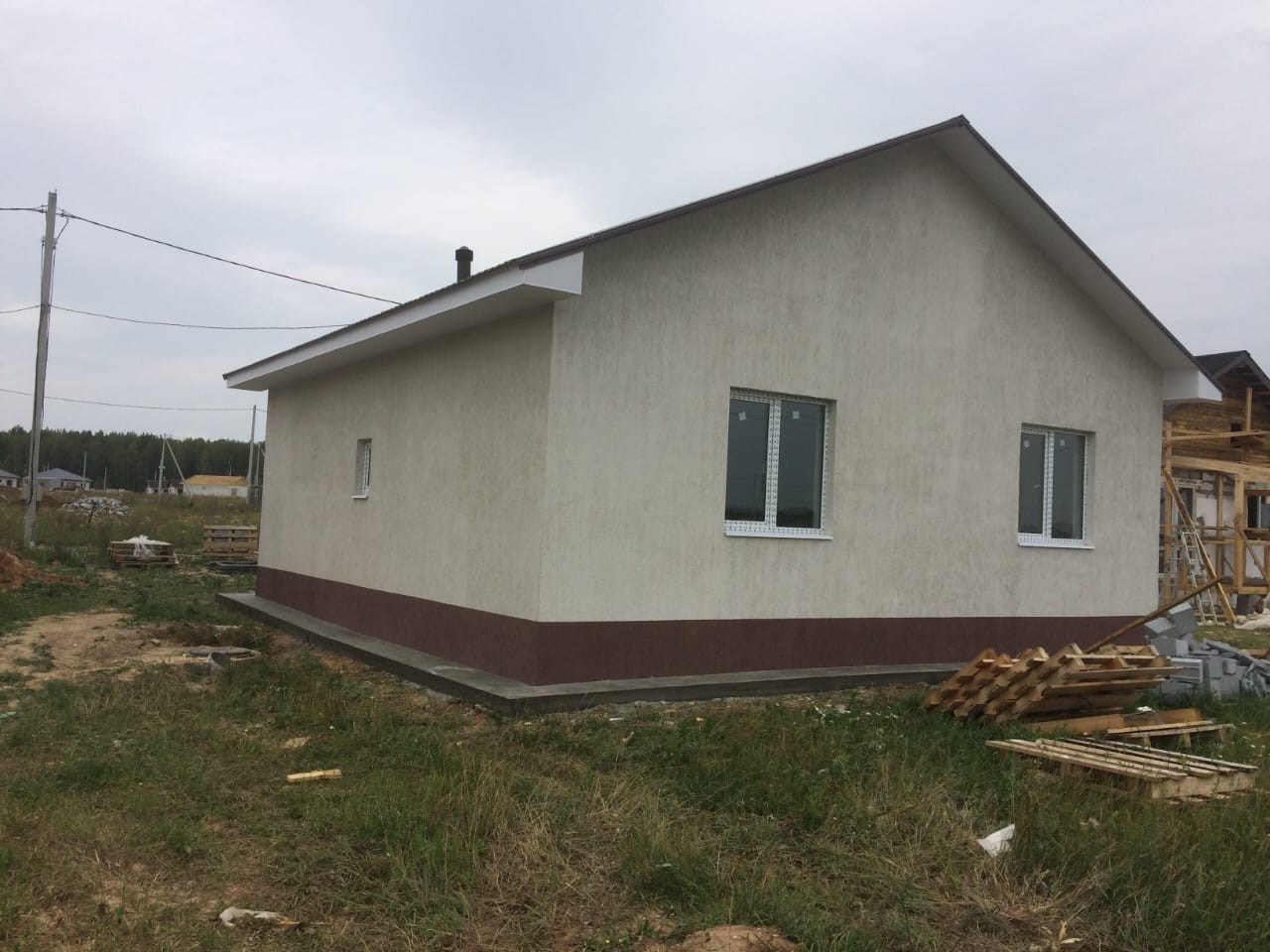 - стены из твинблока, с наружным утеплением из пенопласта, штукатурка короед;