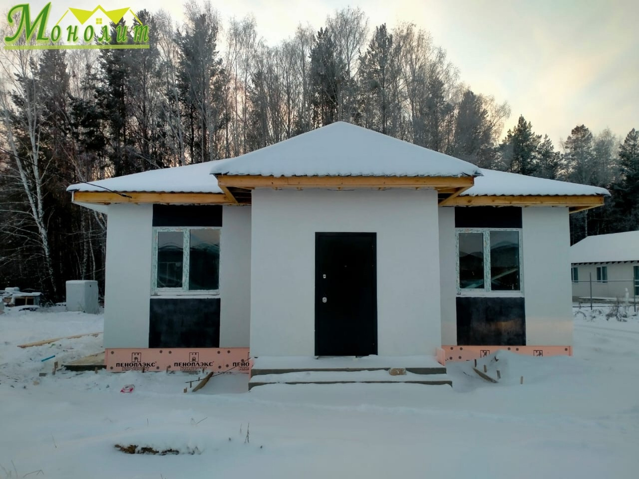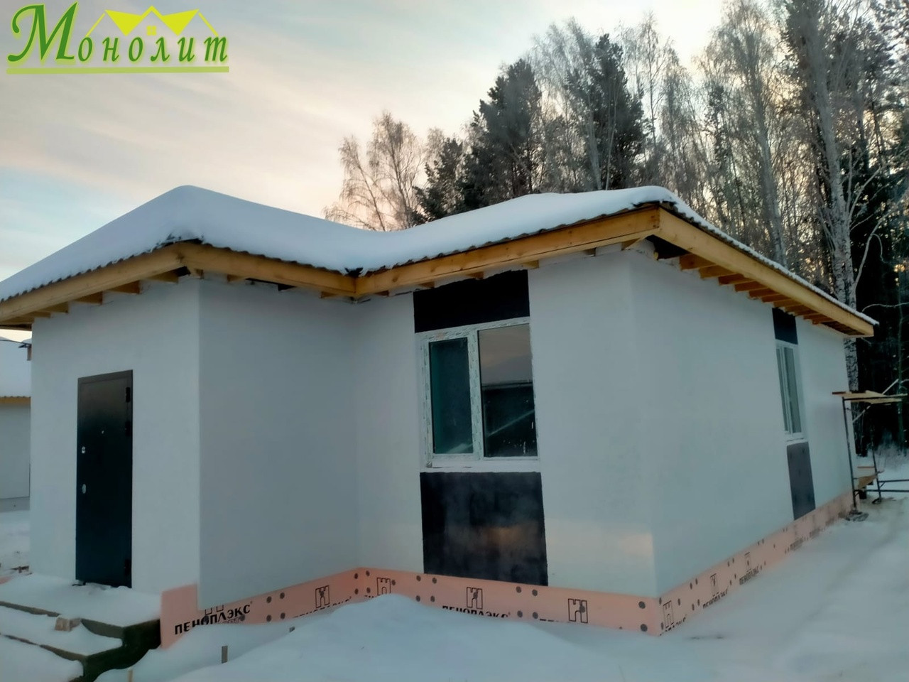 ✅ Стены выполнены из газобетонного блока (300 мм) с утеплением пенопластом (80 мм)