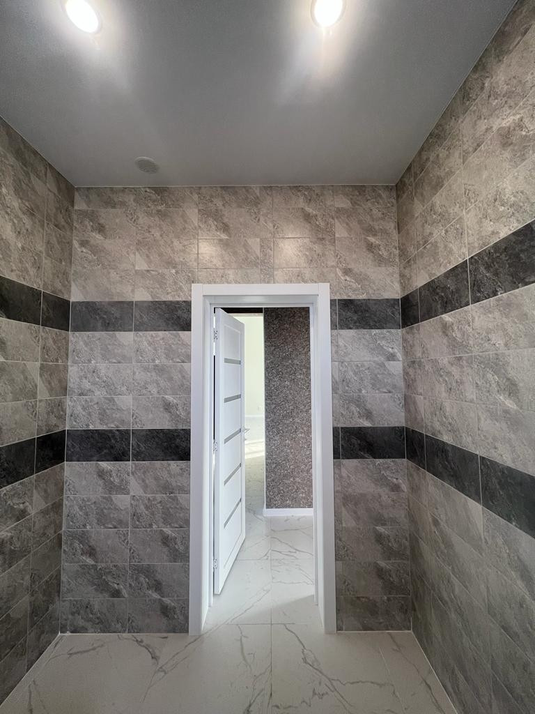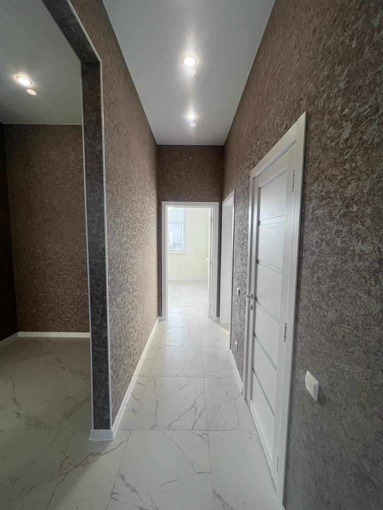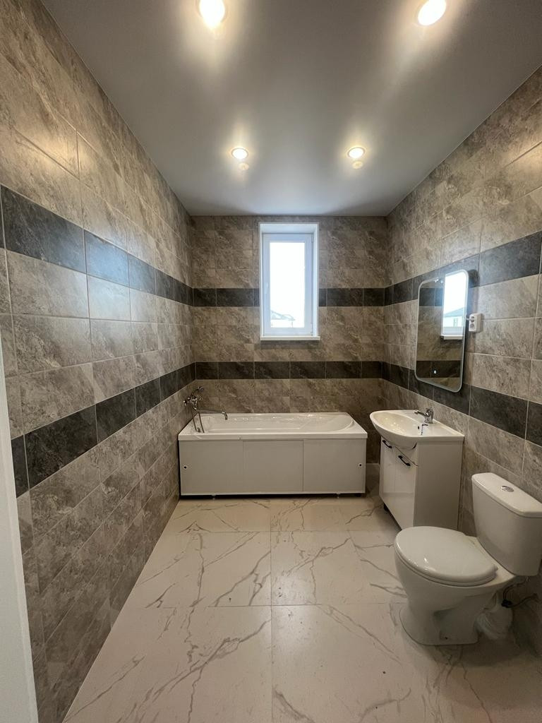 Внутренняя отделка под ключ (весь пол керамогранит, обои, в с/узлах кафель на стенах, натяжные потолки со светильниками, межкомнатные двери,санфаянс в санузле и котельной,зеркало).
