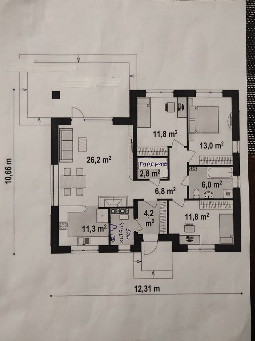 В доме три спальни, два санузла, кухня-гостиная, котельная, тамбур, веранда.