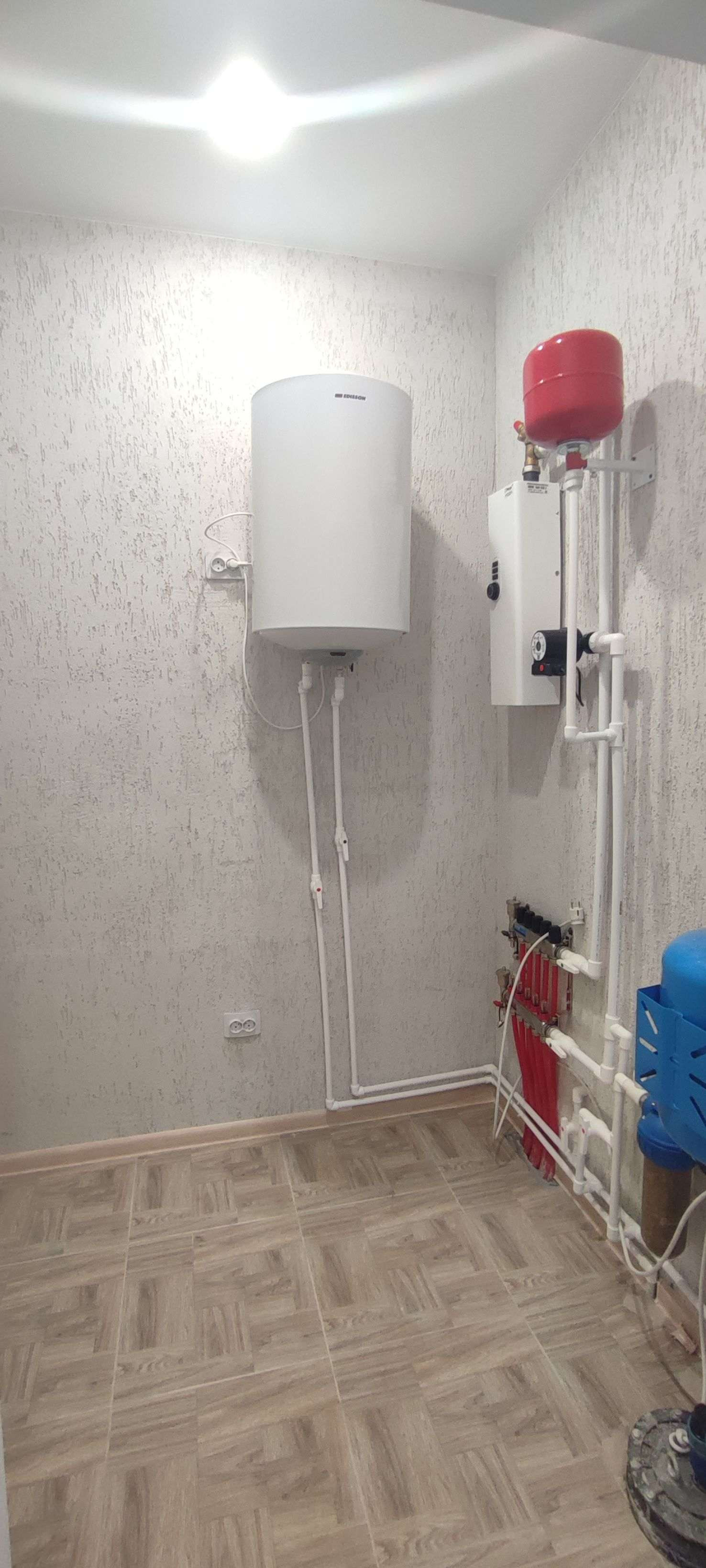 Котельная полностью укомплектована необходимым оборудованием: скважина 80 метров (артезианская вода), автономная станция водоснабжения с расширительным баком и центробежным насосом, бойлер для подачи горячей воды, трёхфазный жидкостный котел 12 кВт, электрощиток с современными защитными автоматами, СЕПТИК-ДРЕНАЖ 7 КУБОВ.