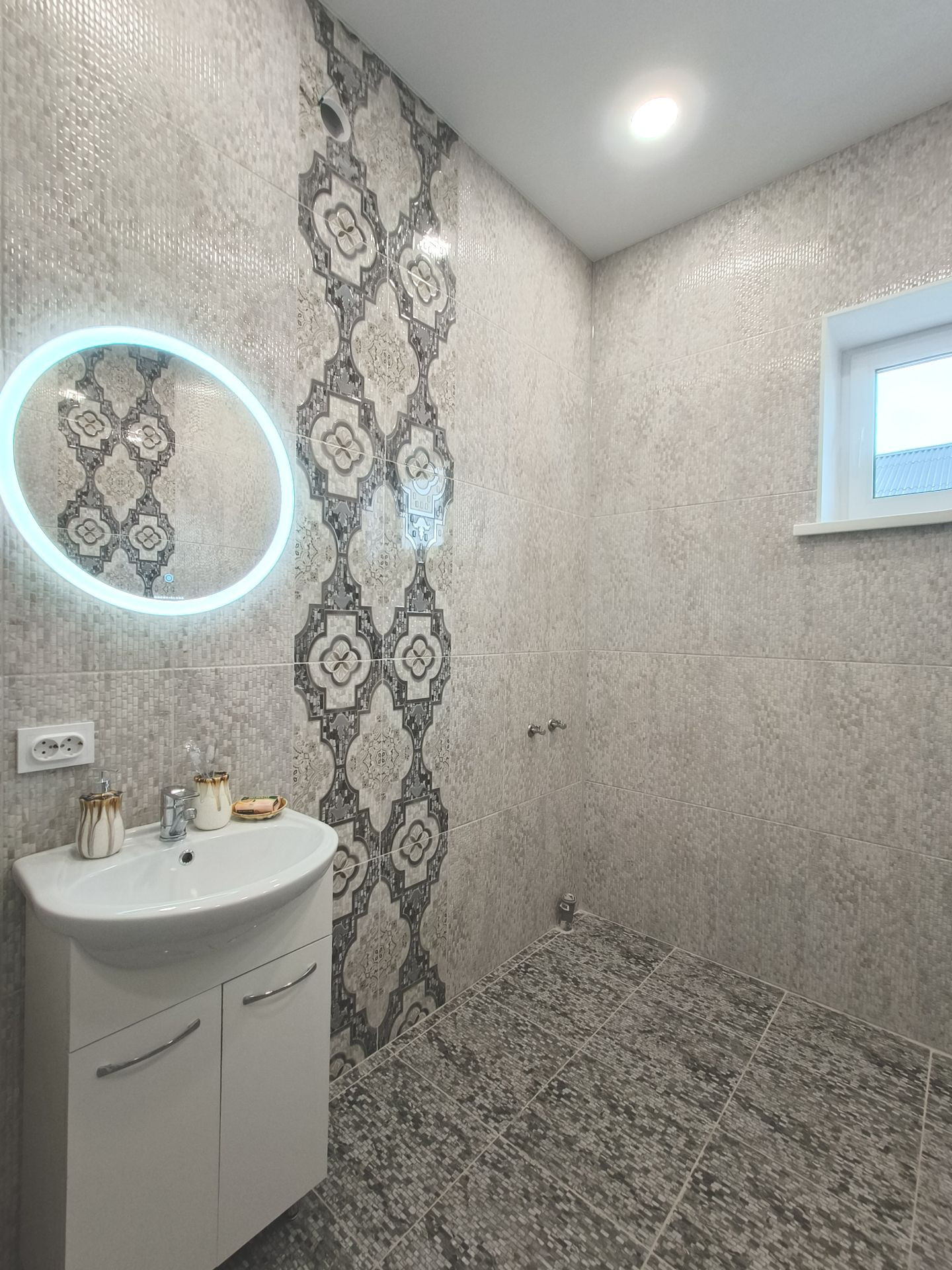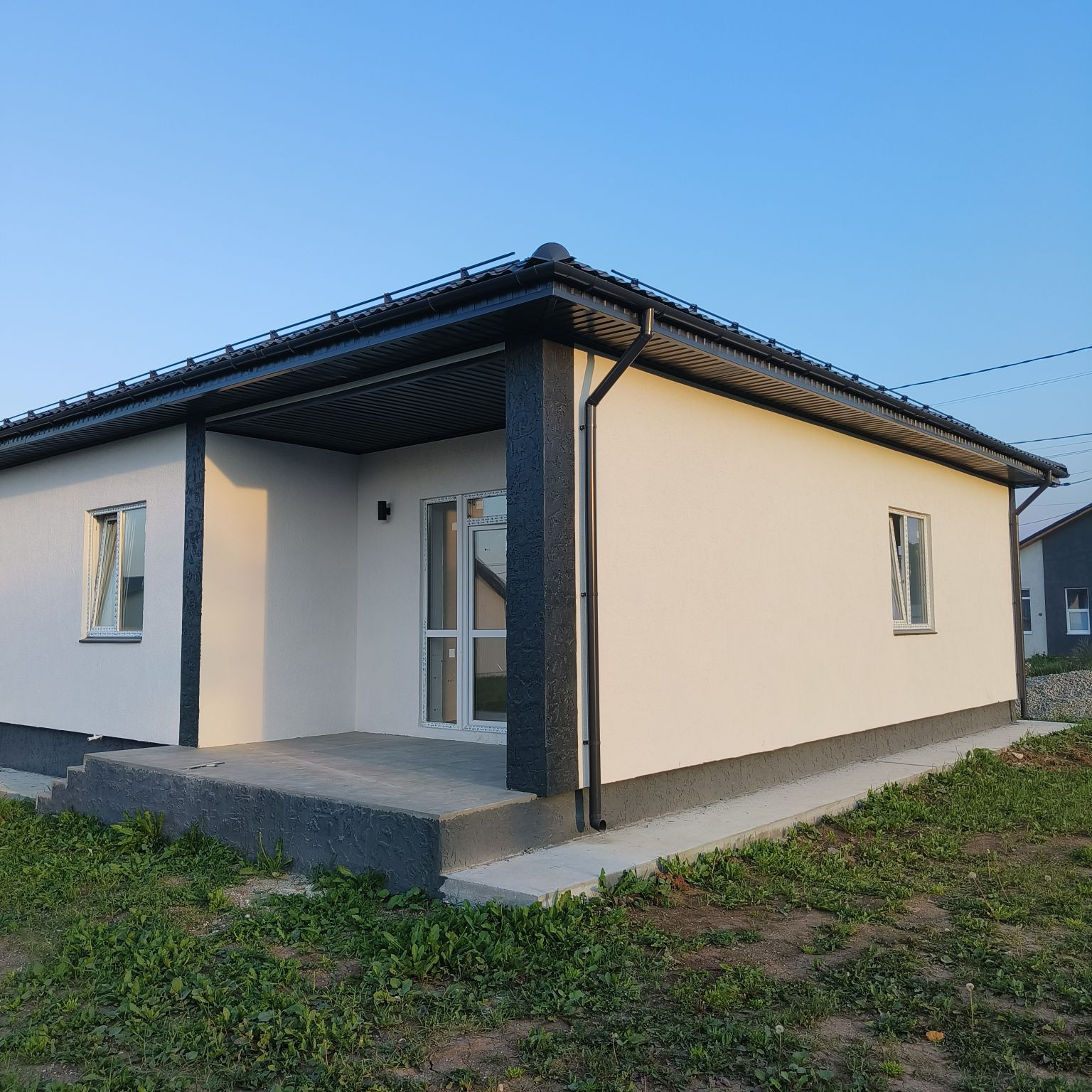 Вся жилая площадь напольное покрытие керамогранит, стены чистовая (под покраску, поклейка обоев, декоративная штукатурка), натяжной потолок, осветительные приборы, межкомнатные двери, плинтуса, фасад дома и территория участка оснащены освещением.