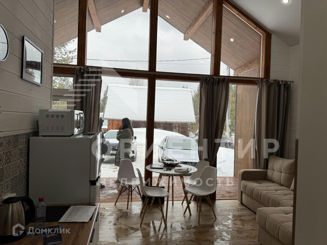 Дом из утепленных заводских панелей с панорамными окнами. Такая конструкция обеспечивает энергоэффективность и минимальные затраты на отопление.