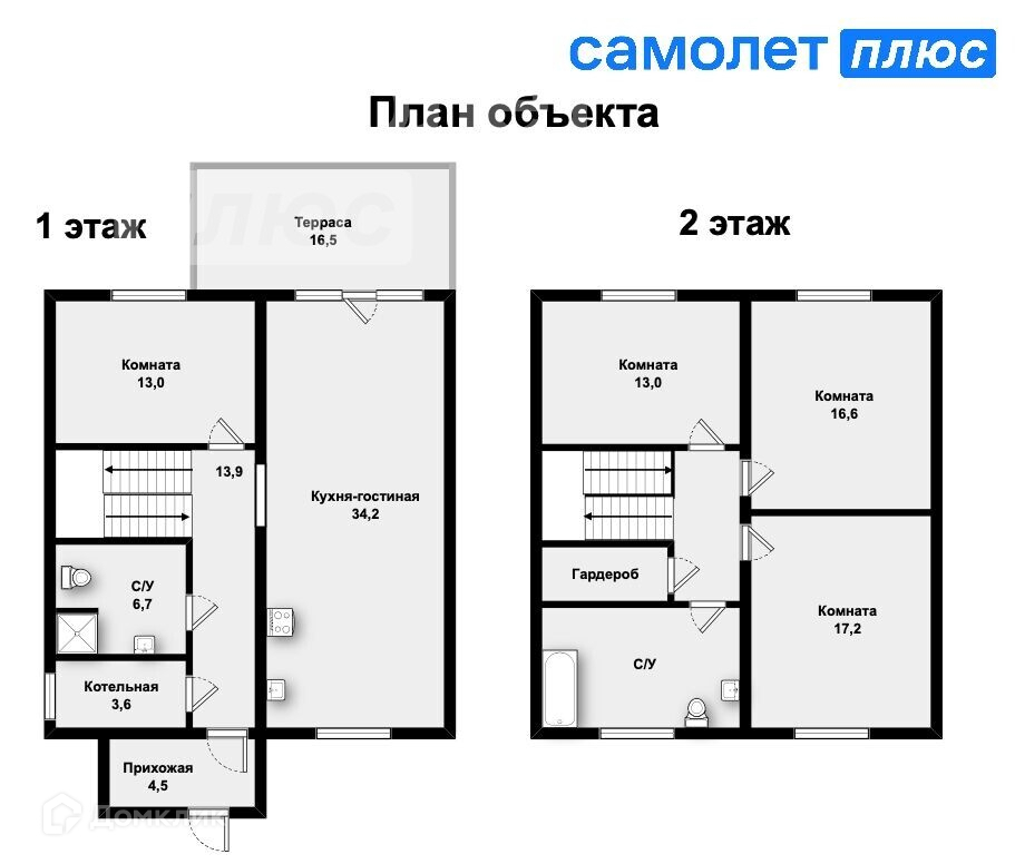 - 2 ЭТАЖ: 3 спальни, большой санузел, гардеробная
