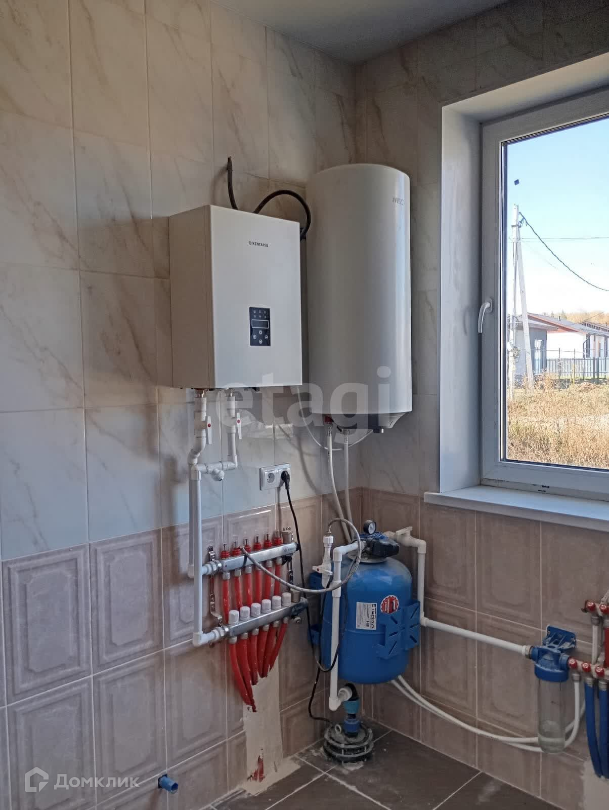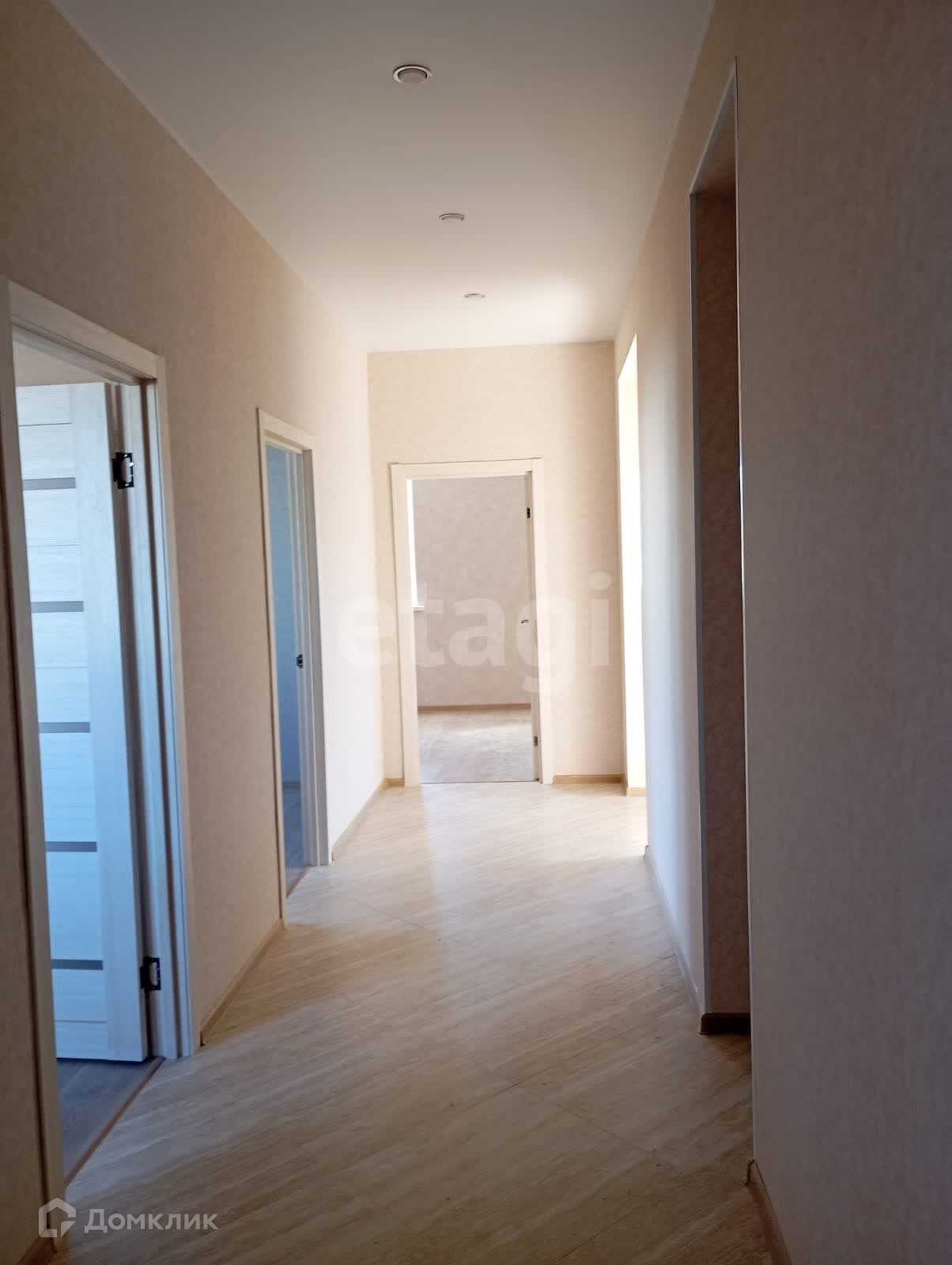 Дом построен из твинблока с кирпичной облицовкой. Есть септик и скважина. На полу керамогранит, на стенах качественные обои, межкомнатные двери светлых тонов.