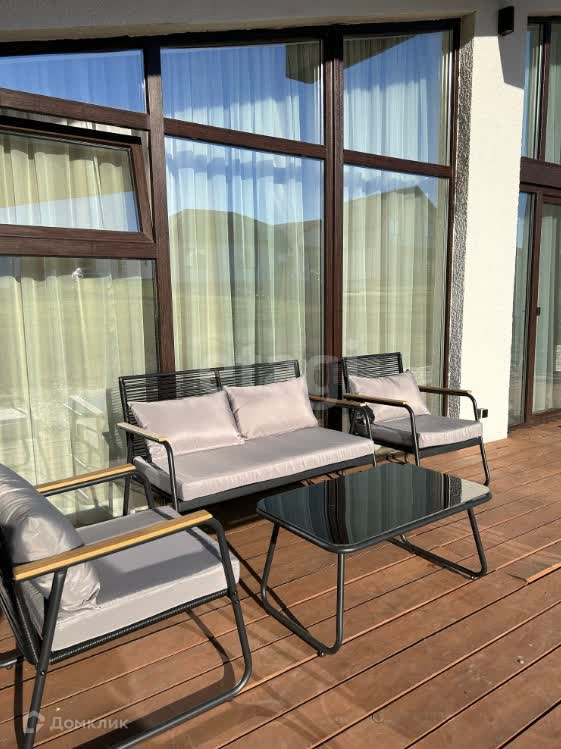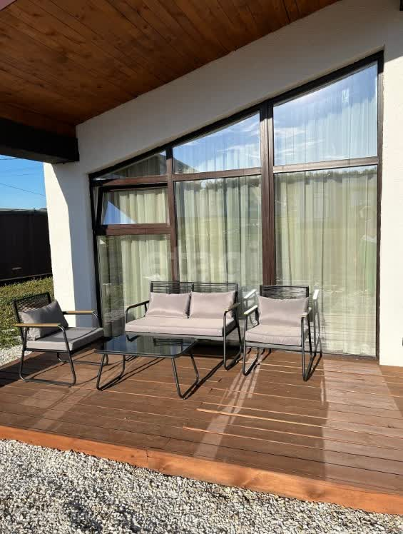 В доме прекрасно оборудовано место на террасе, где семья может проводить свободное время, наслаждаясь солнышком и закатами.