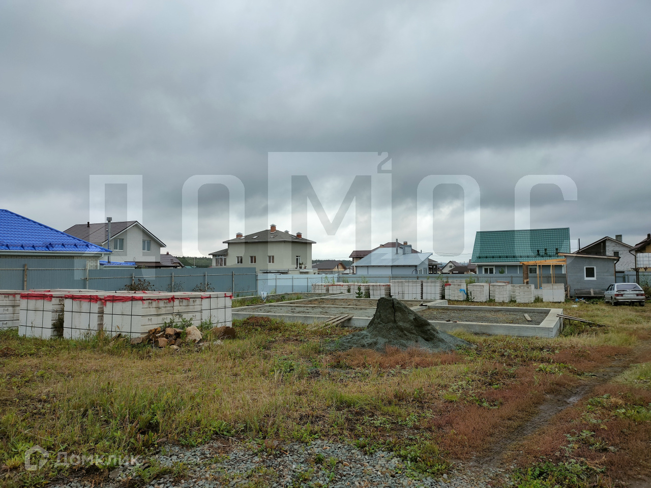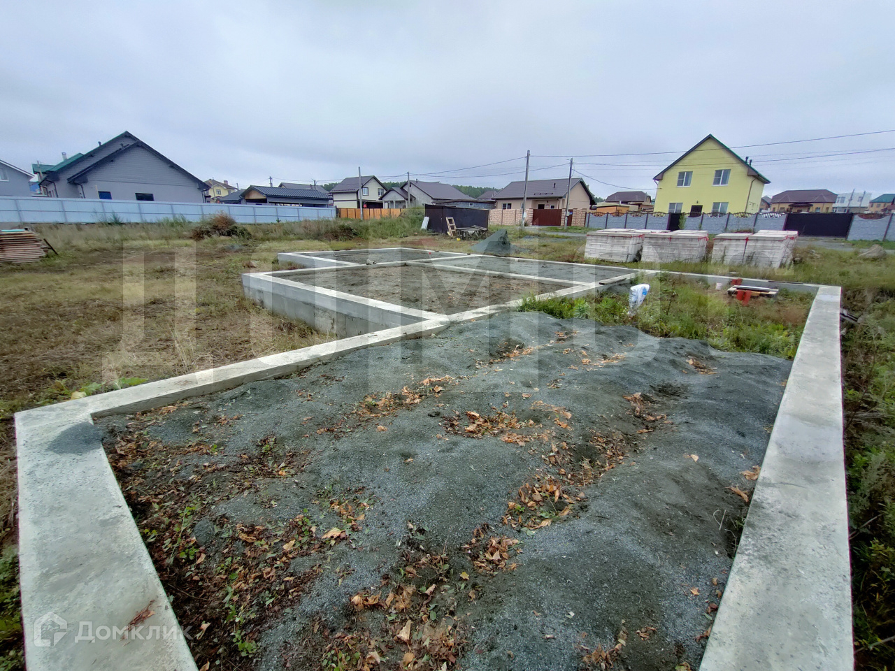 Так же на участке уже имеется фундамент ( есть фото планировки ) и бытовой домик, где может разместиться бригада на время стройки. Фундамент из блоков ФБС, с подушками под блоками, сделан армопояс. Внутри фундамента заложена овощная яма.