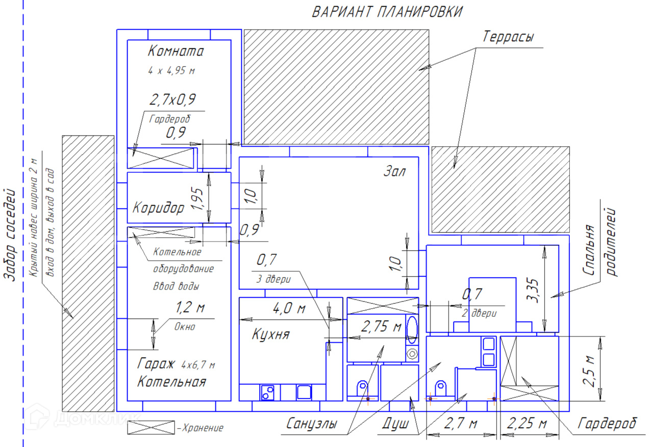 Участок правильной прямоугольной формы, размером 45*25 метров. На нем можно построить не только дом с террасой, но и баню, теплицу и другие хозяйственные постройки.