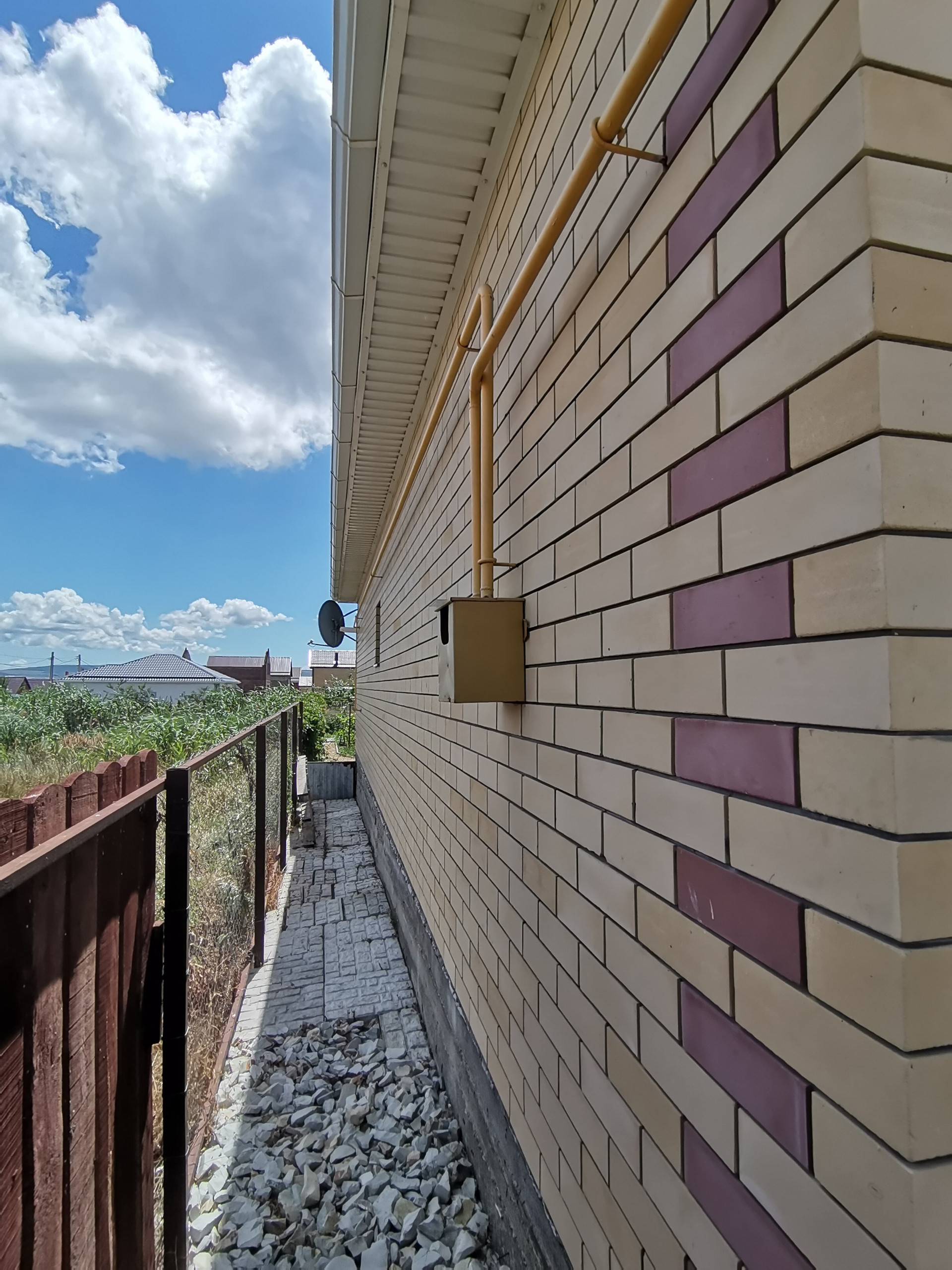 ДОМ кирпичный построен в 2019 году, толщина стен 40 см. Фундамент ленточный, высокий цоколь, залита плита под всем домом (есть фото этапов строительства).