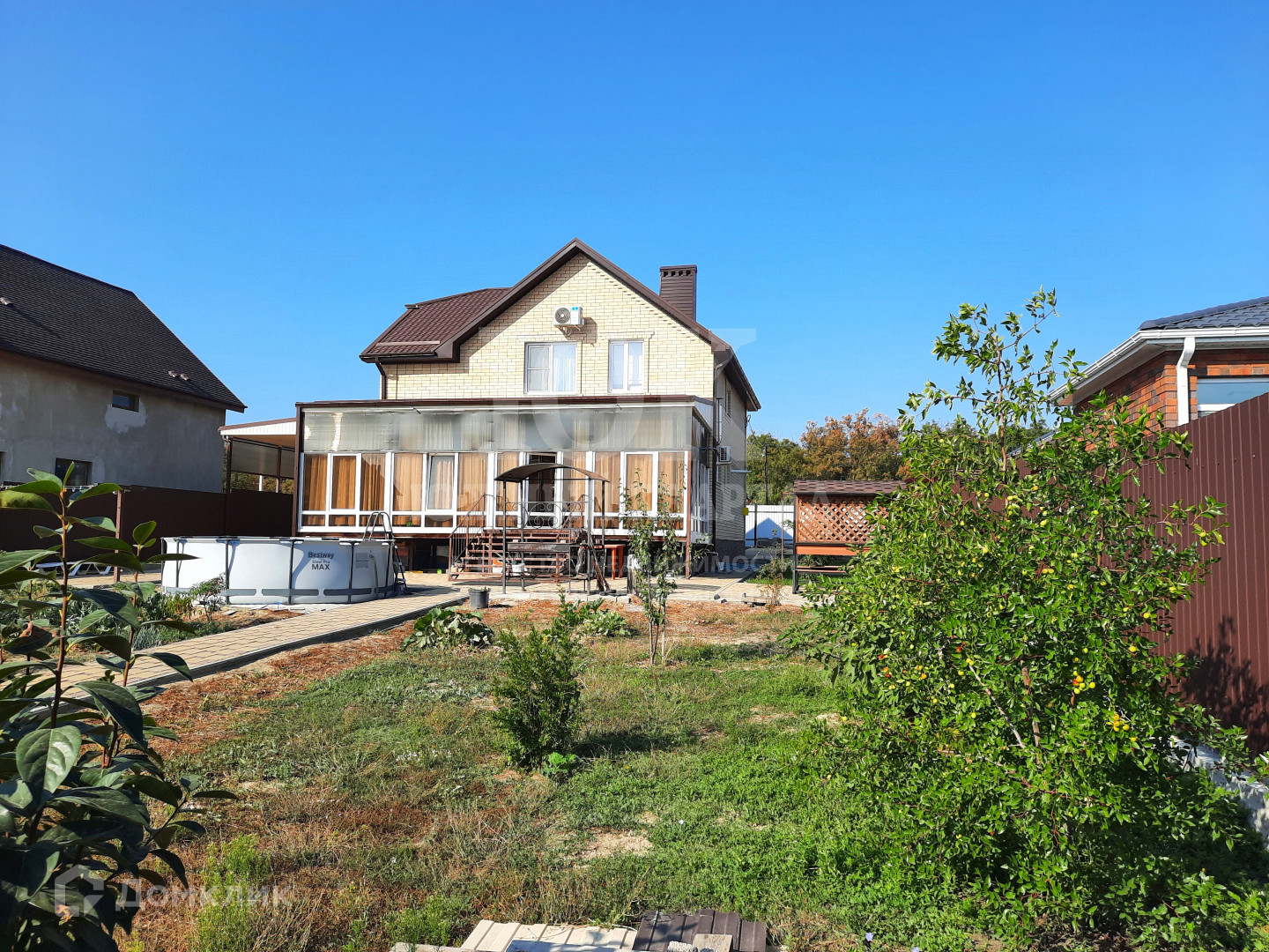 -Хороший, ухоженный сад с множеством плодово-ягодных деревьев, беседка, мангальная зона, бассейн.
