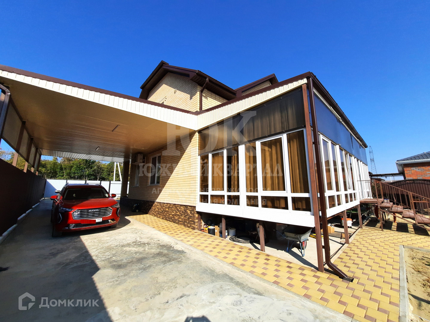 - Дом построен из кирпича