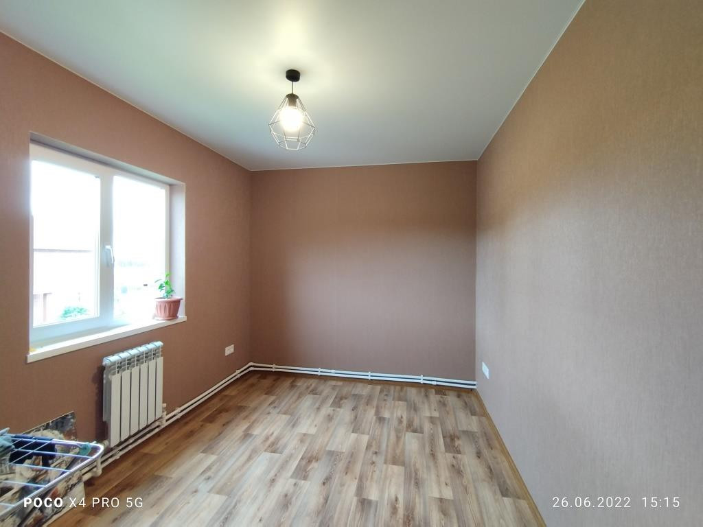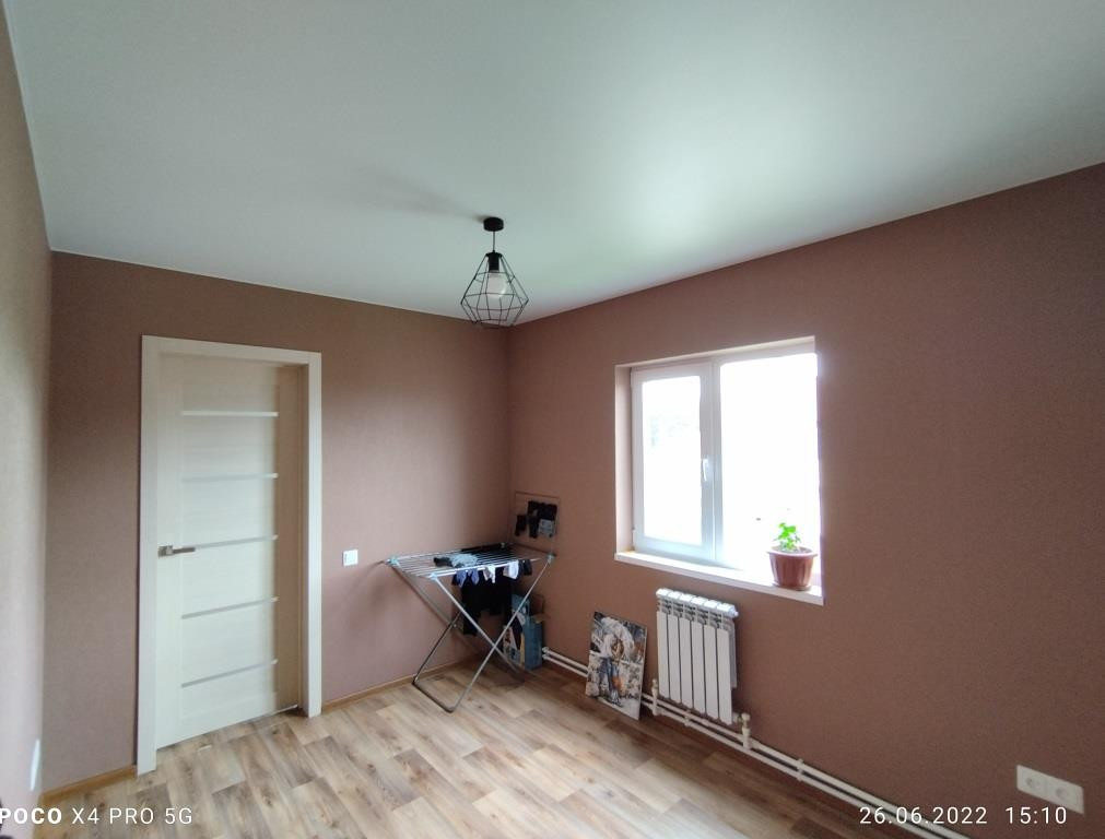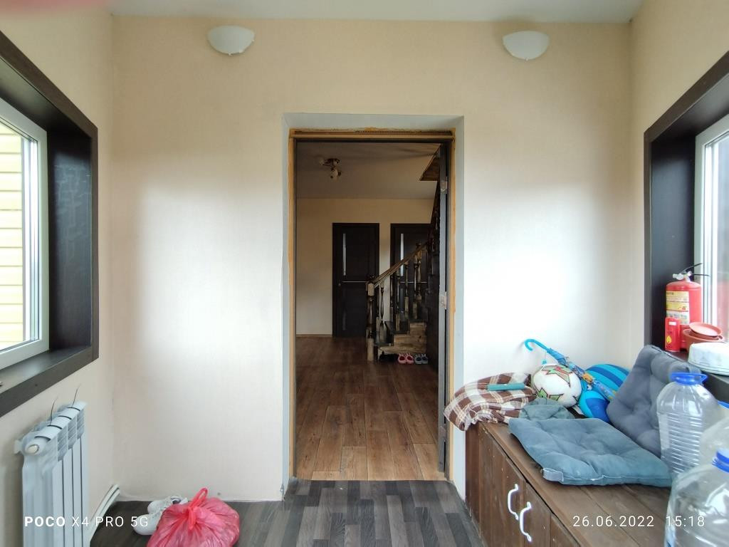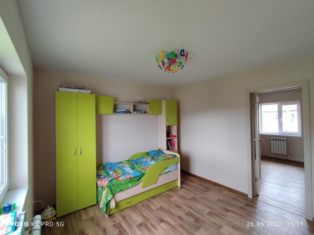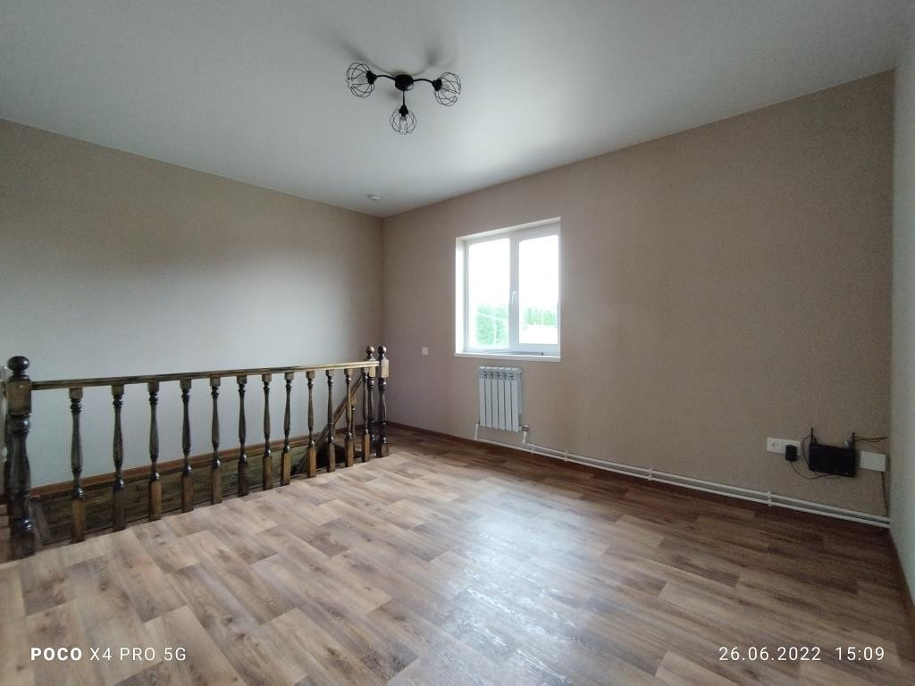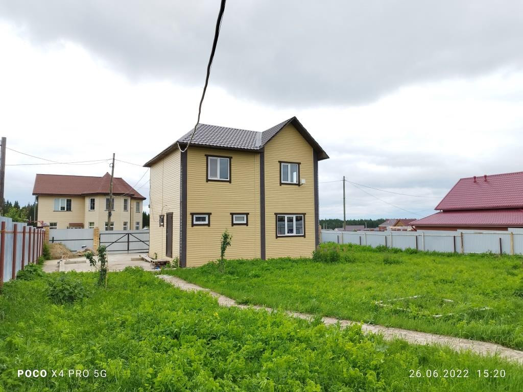 Дом построен в 2018 году: фундамент свайный, общая площадь дома 112 кв.м. включает в себя 4 комнаты: просторная гостиная 16 кв.м. рядом с кухней такая же просторная и светлая прихожая, санузел и котельная на первом этаже и 3 комнаты (2 спальни и детская комната (9+9+14 кв.м.)) + холл с окном на втором. Дом полностью готов к круглогодичному проживанию. Водоснабжение центральное, канализация - локальная (ж/б кольца), отопление - электрический котёл, электричество 220 В, газопровод проходит в 10 м. от дома вдоль участка по улице, можно подключать к дому.