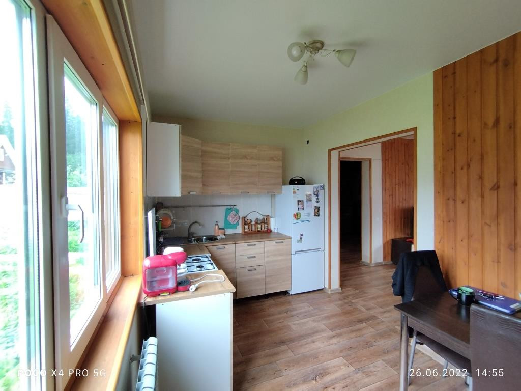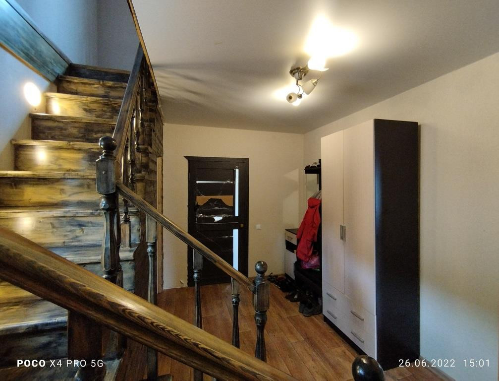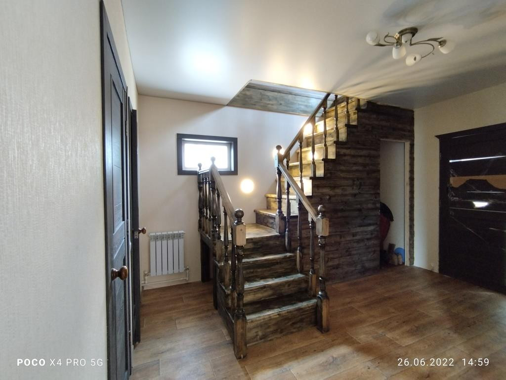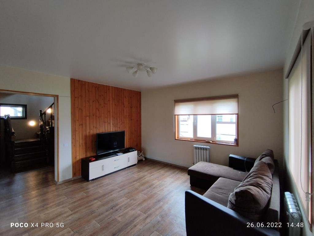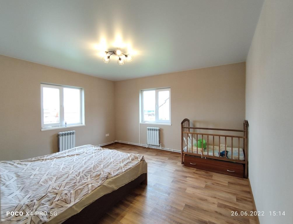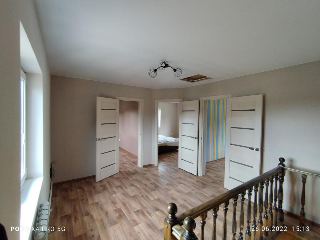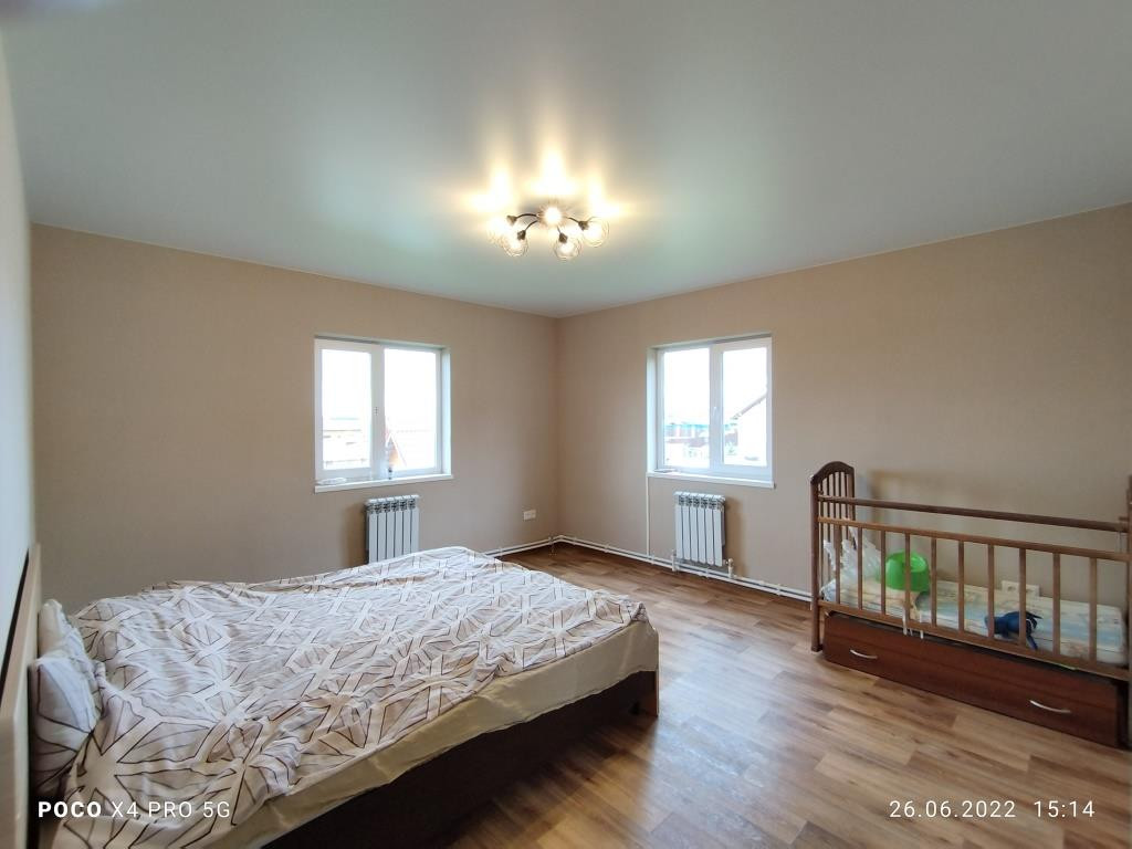 Дом построен в 2018 году: фундамент свайный, общая площадь дома 112 кв.м. включает в себя 4 комнаты: просторная гостиная 16 кв.м. рядом с кухней такая же просторная и светлая прихожая, санузел и котельная на первом этаже и 3 комнаты (2 спальни и детская комната (9+9+14 кв.м.)) + холл с окном на втором. Дом полностью готов к круглогодичному проживанию. Водоснабжение центральное, канализация - локальная (ж/б кольца), отопление - электрический котёл, электричество 220 В, газопровод проходит в 10 м. от дома вдоль участка по улице, можно подключать к дому.