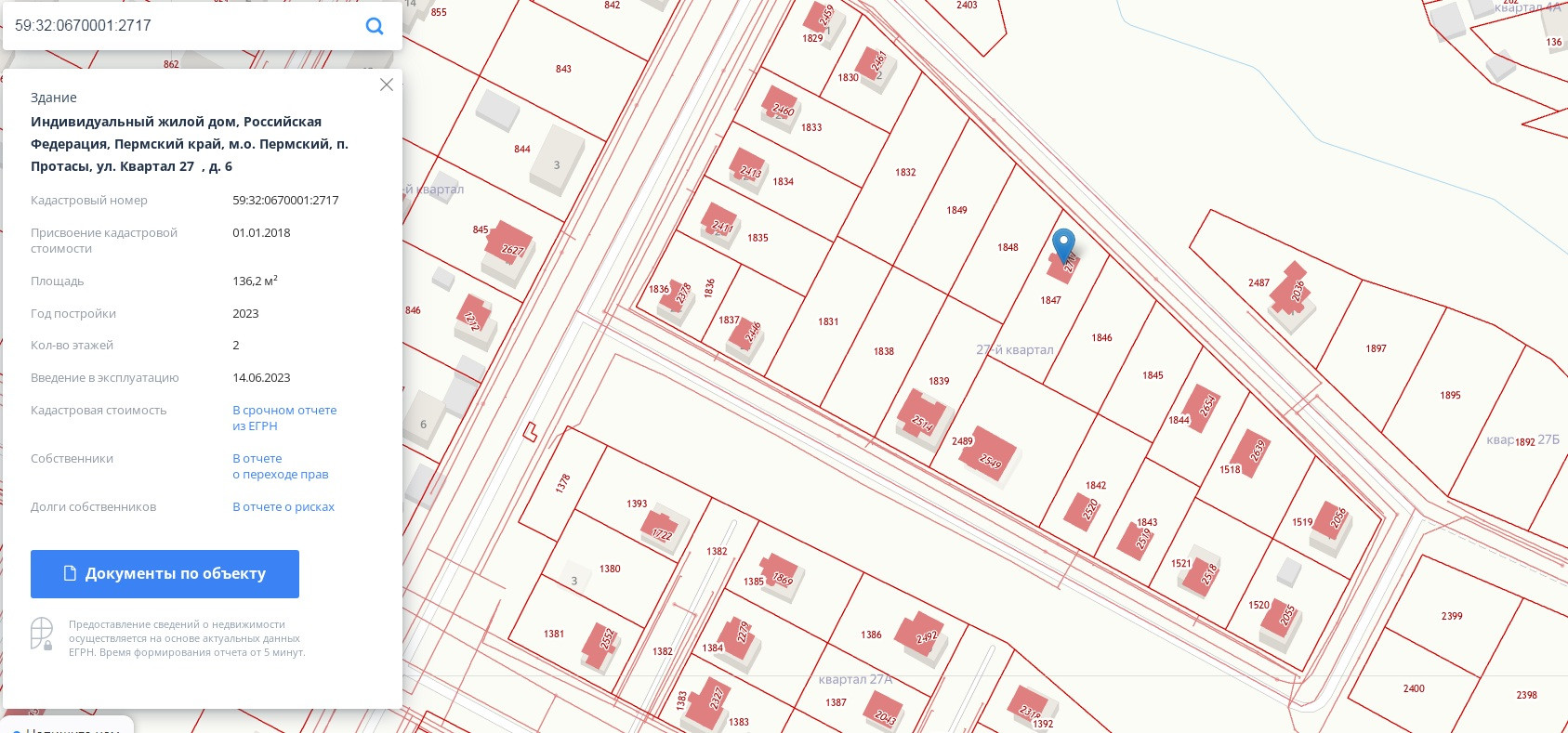 Кадастровый номер жилого дома: 59:32:0670001:2717.