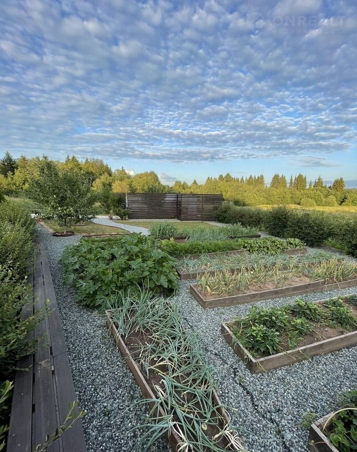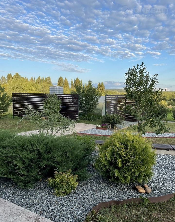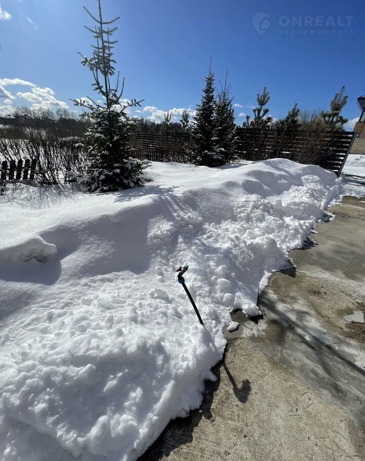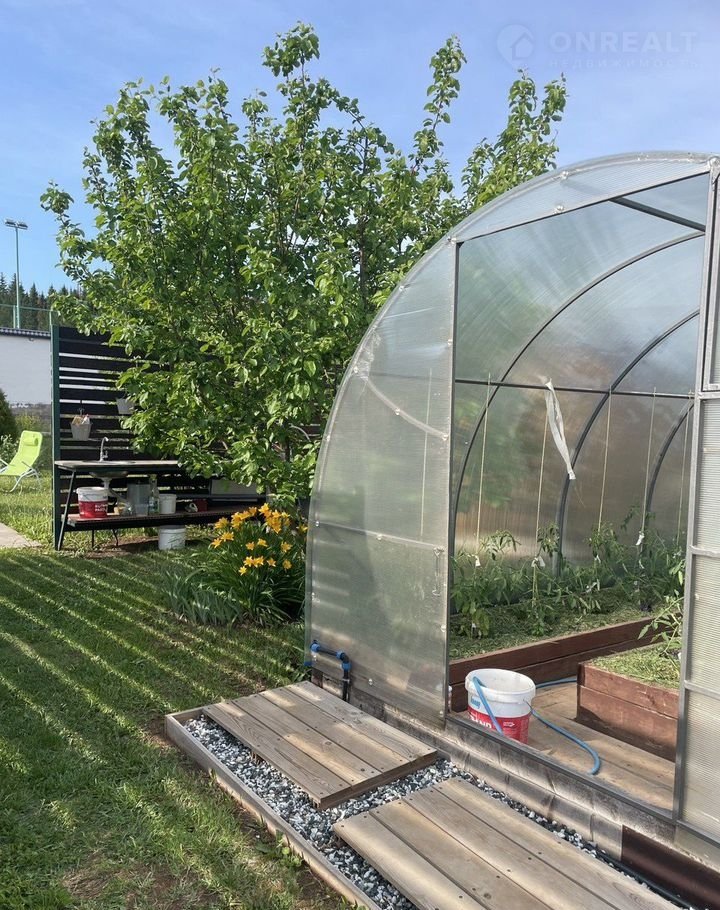 Участок: ухоженный сад и огород с ландшафтным дизайном. В доль забора высажены сосны и ели. По периметру участка высажено множество деревьев и плодовых культур. Перед участком нет соседей, что обеспечивает дополнительную приватность и спокойствие. Зимой на соседнем участке заливают каток, превращая пространство перед домом в уютное место для зимних развлечений.