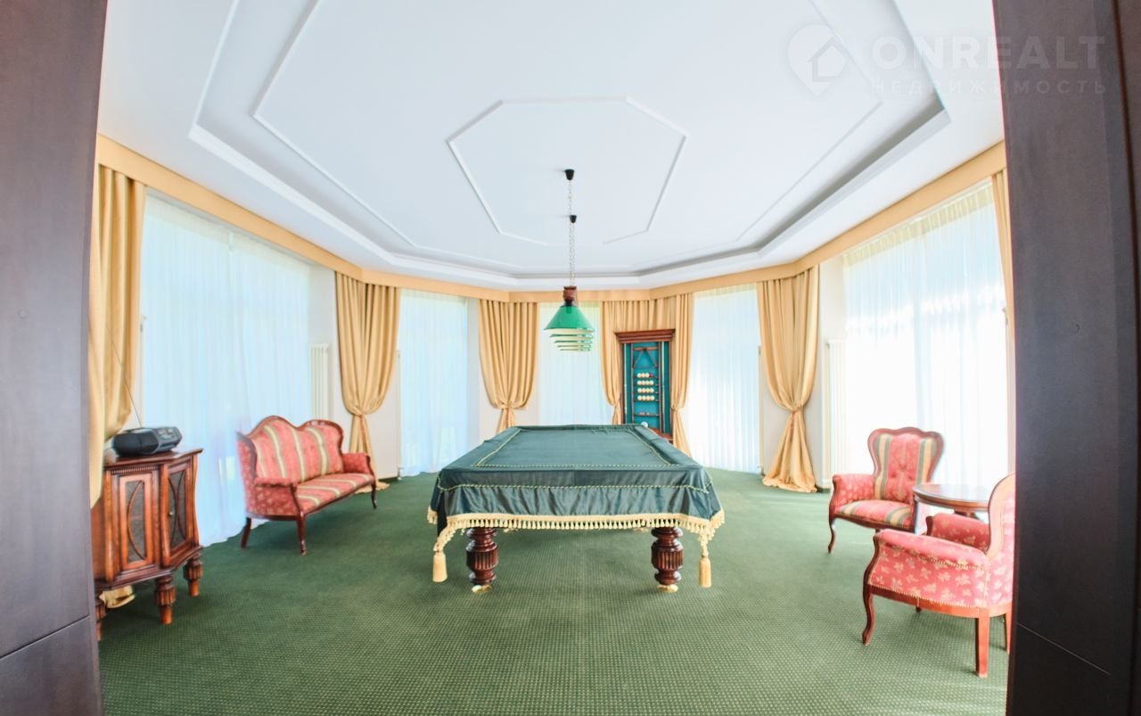 Первый этаж: прихожая, гардеробная с выходом в гараж, кухня-столовая, гостиная, бильярдный зал, с/узел гостевой, подсобное помещение;