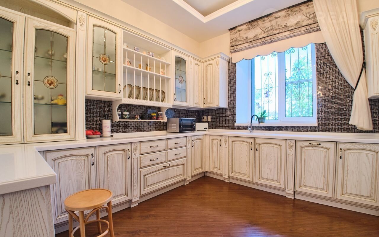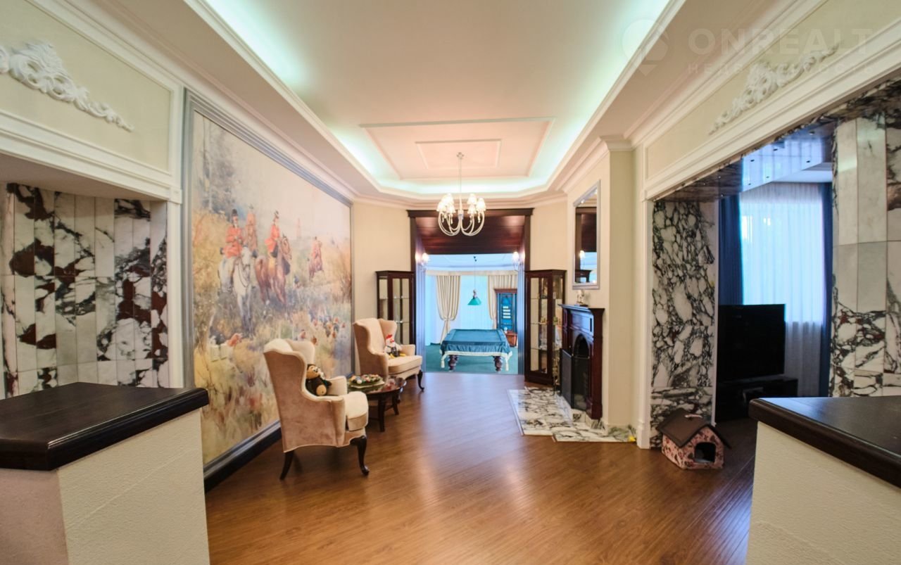Отделка внутри дома и материал мебели: дуб, декоративная штукатурка, натуральный камень, мрамор, керамогранит. Дом полностью меблирован (производство Италия, Англия, Финляндия), финские стеклопакеты. Техника Мiеlе,