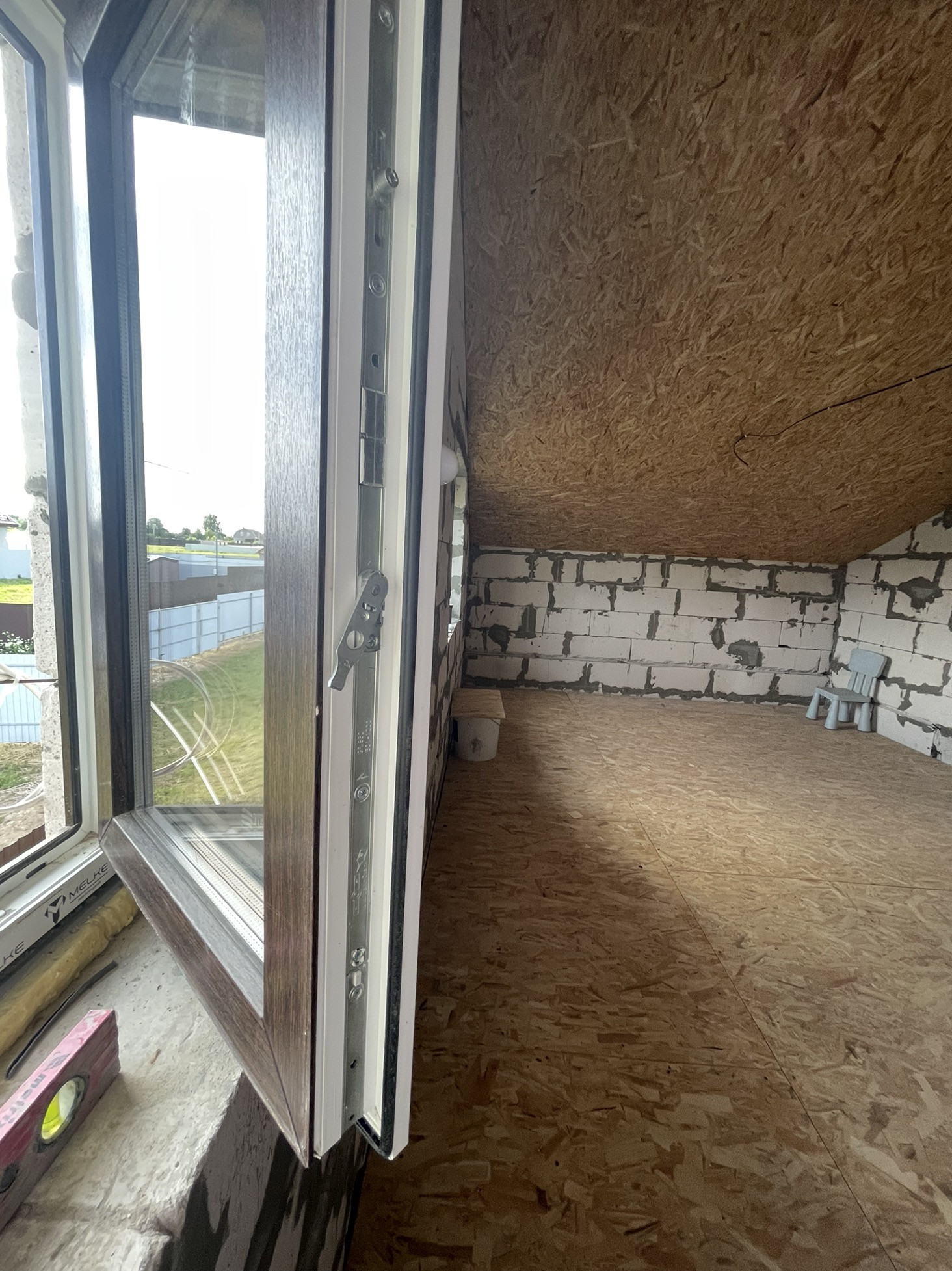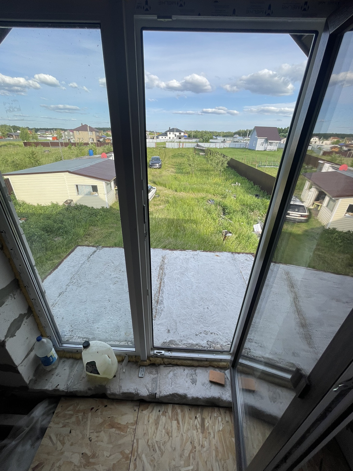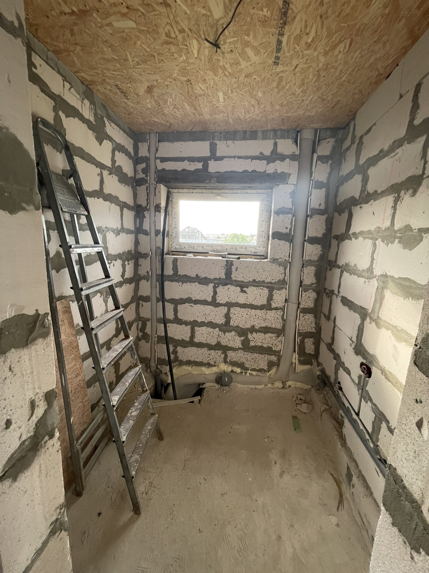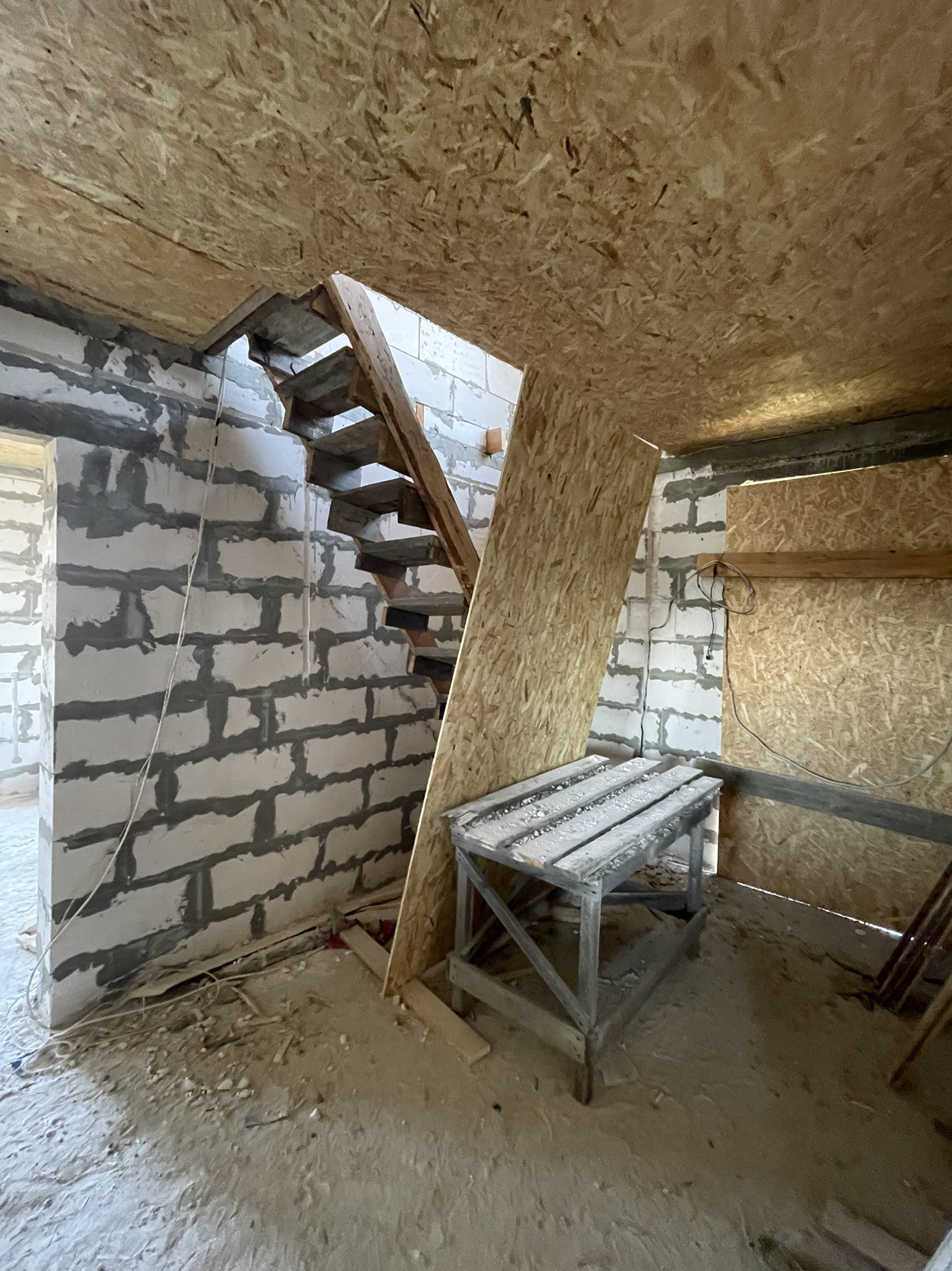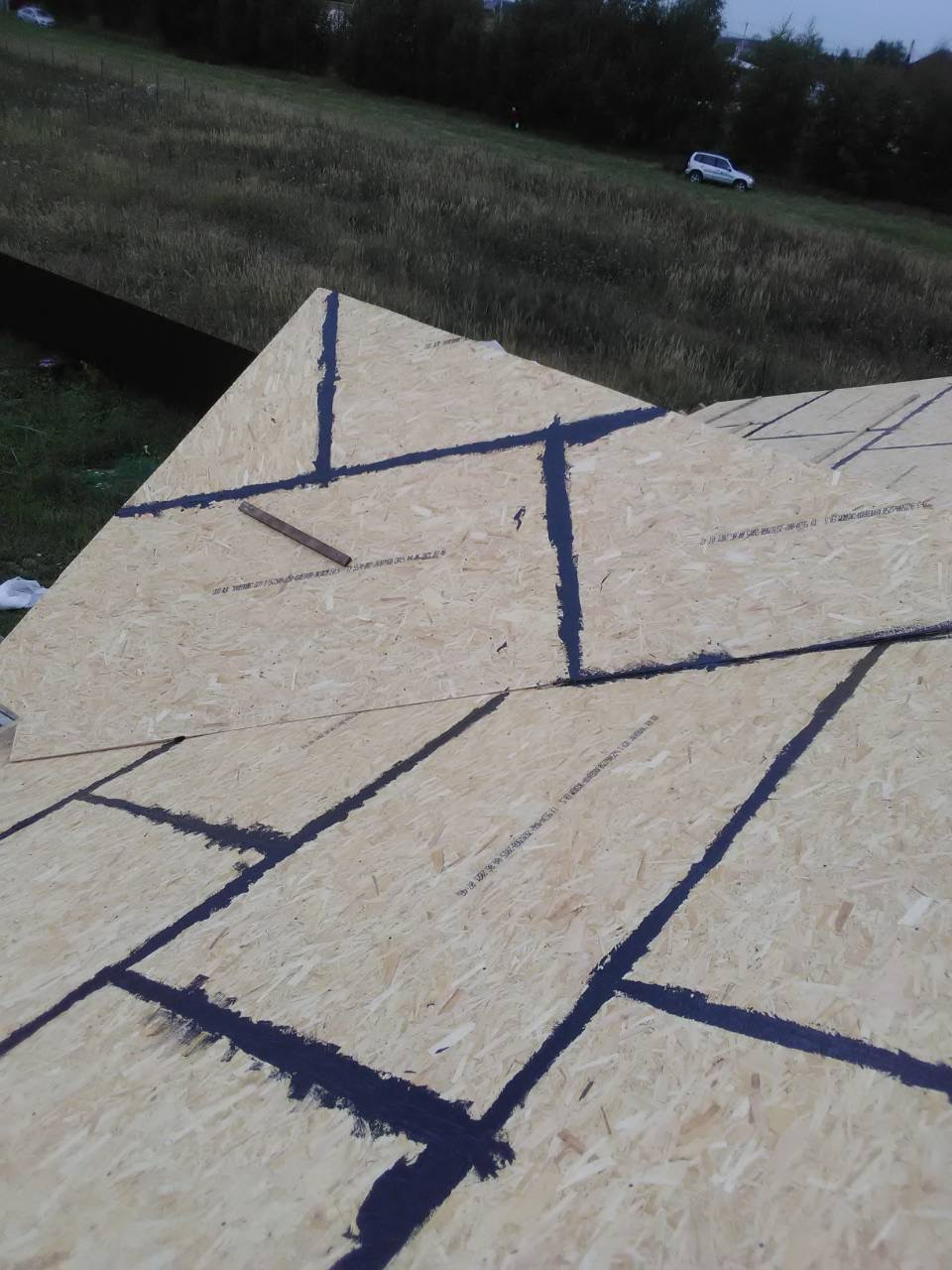 В доме сделана электрика , коммуникаций , вода , газ , канализация в доме , два сан узла , крыша мягкая кровля с 15см утеплитель с пароотводном , потолок крыши и первого этажа зашит ОСБ 12мм , пол утеплитель 15 см + лаги + ОСБ.