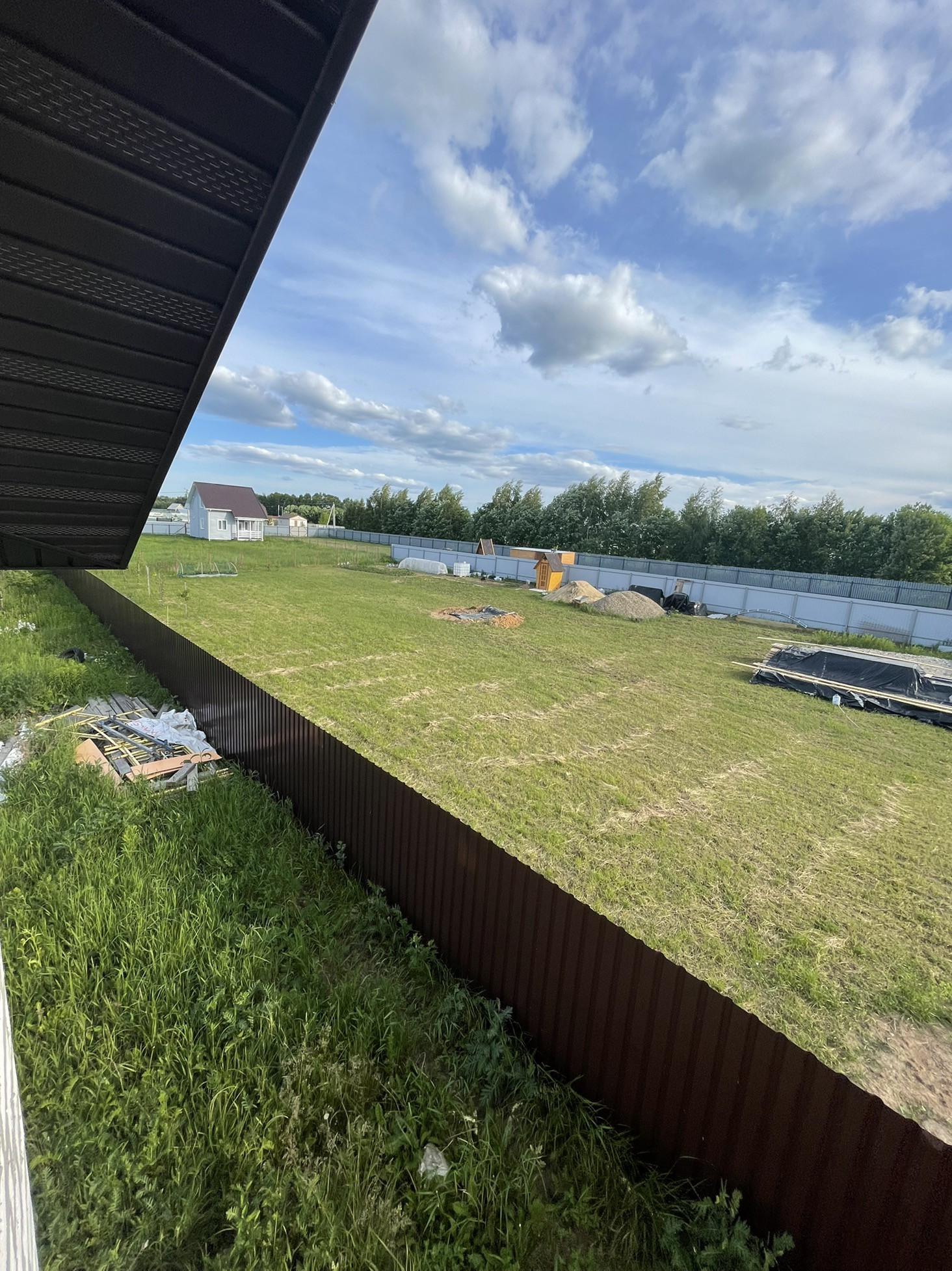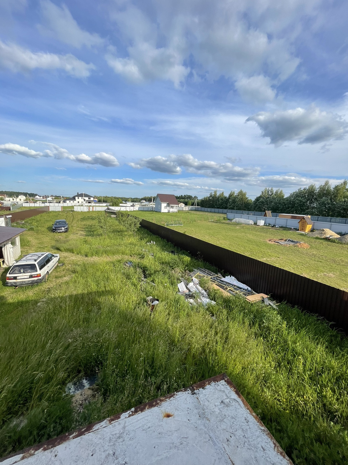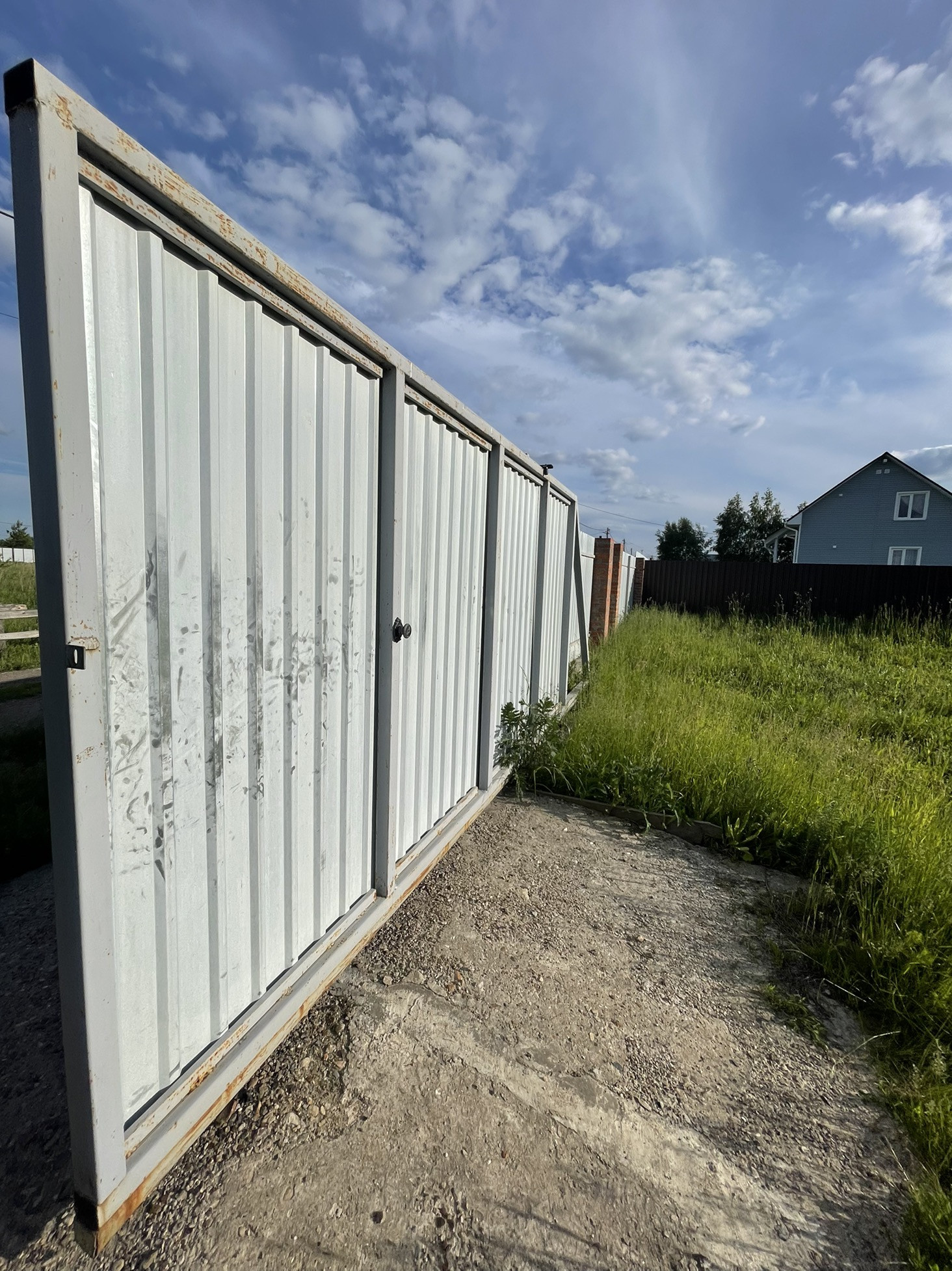 Заезд с двух сторон , дорога засыпана гравием с одной стороны с другой Асфальтная Крошка , откатные ворота , распашные ворота , отступ от дороге предусмотрен , качественный забор по периметру 20 соток (участки разделены по 10 соток)