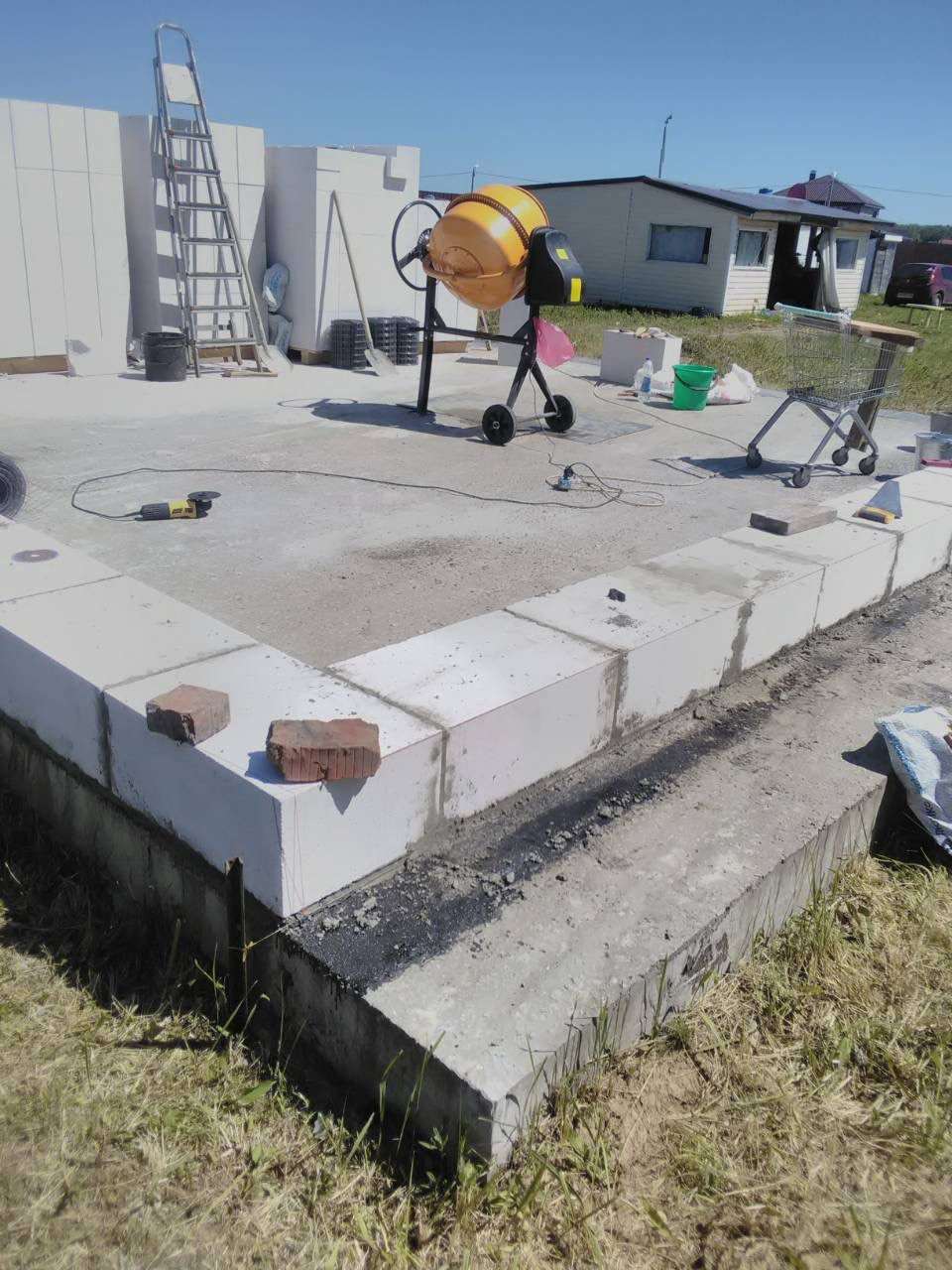 Фундамент монолитный + 12 столбов ( выдержит 5-ти этажный дом )