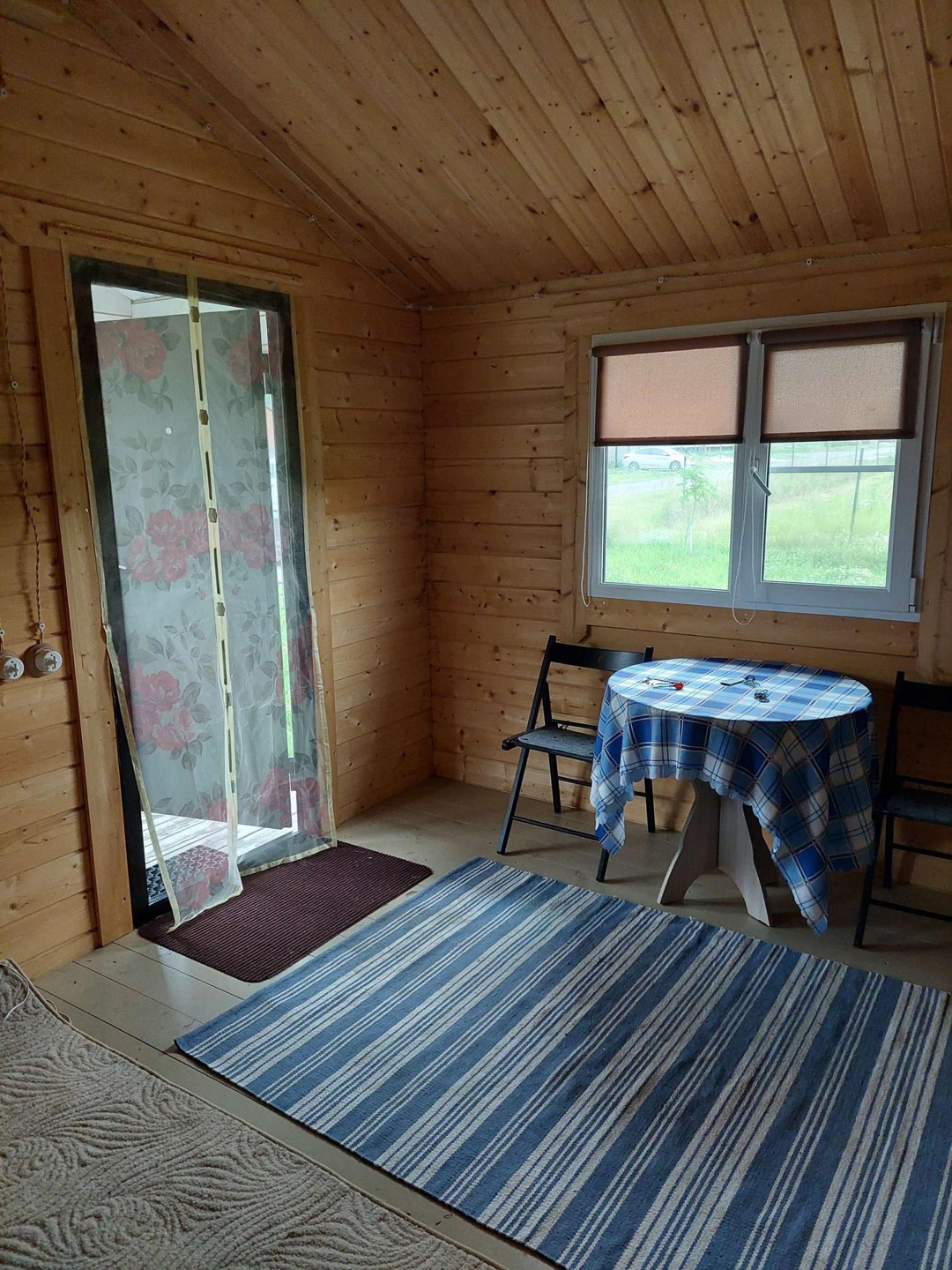Дом деревянный с небольшой террасой. Внутри обшит вагонкой. Свет заведён в дом.