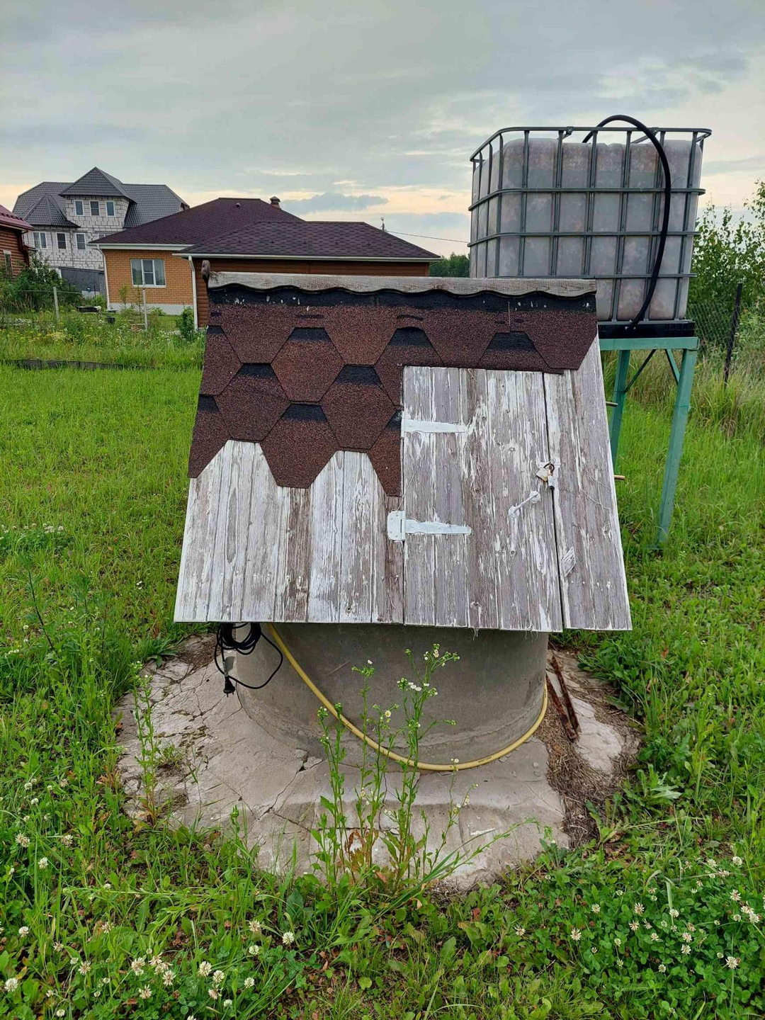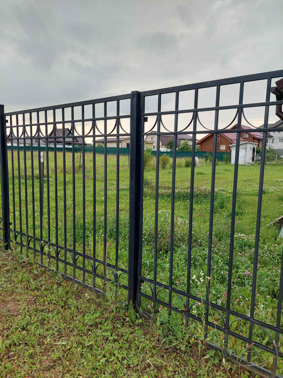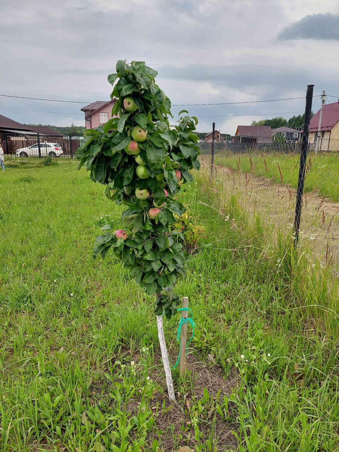 Участок огорожен сеткой и забором из металлических прутьев. Ровный, ухоженный, правильной формы. Посажены мододые плодовые деревья и кусты. Построена бытовка для хранения инвентаря. Есть колодец для полива, два септика.