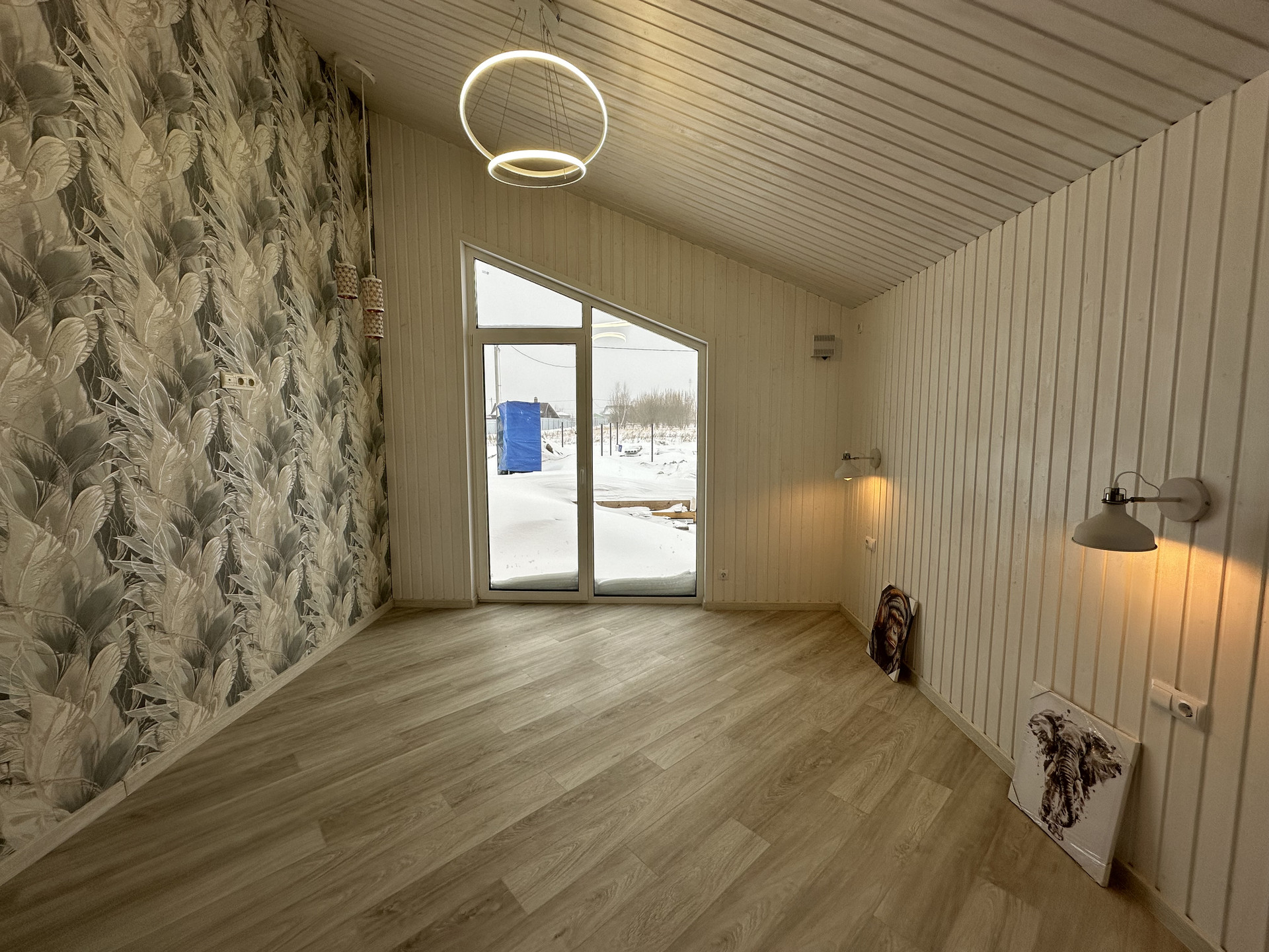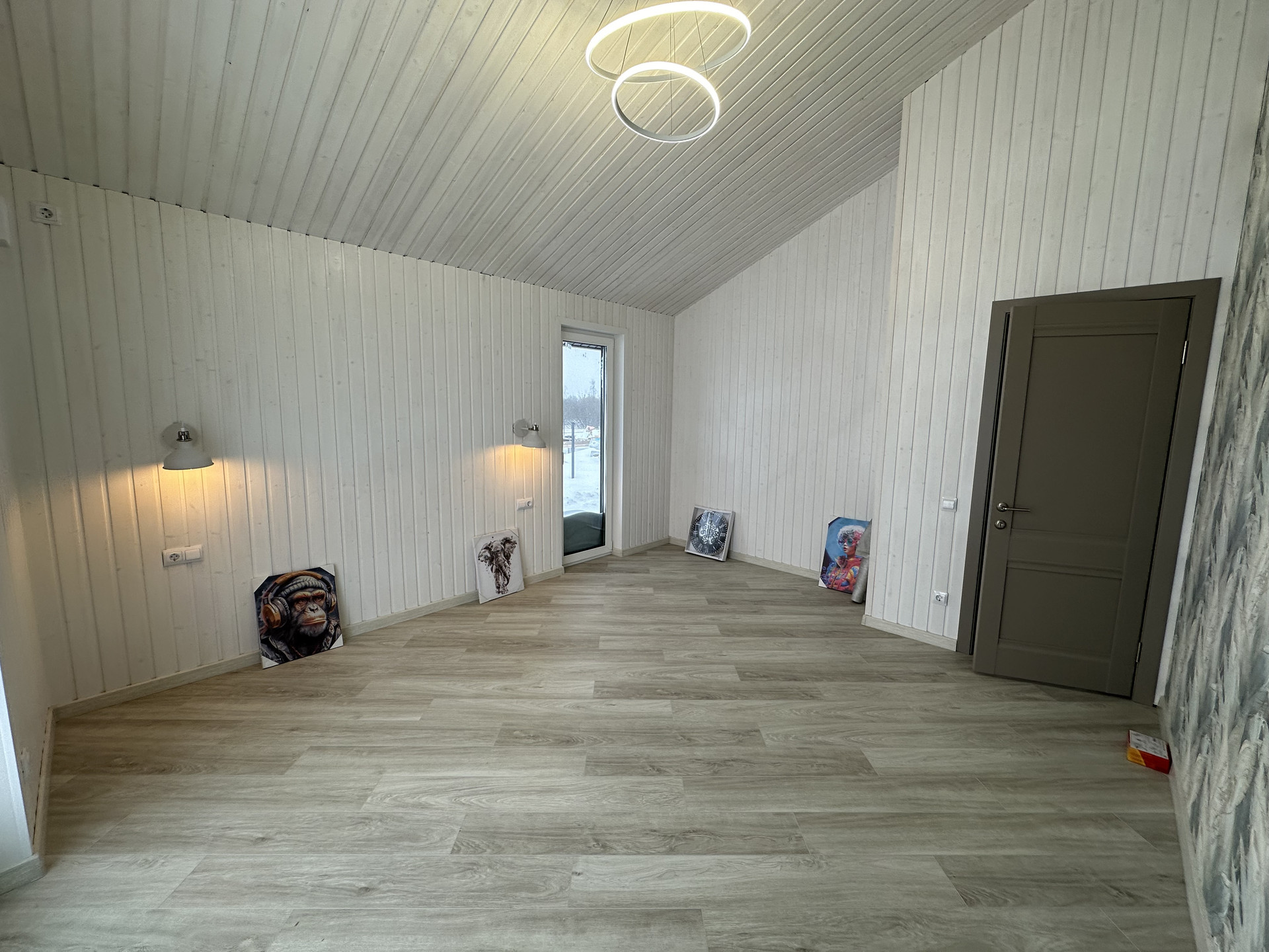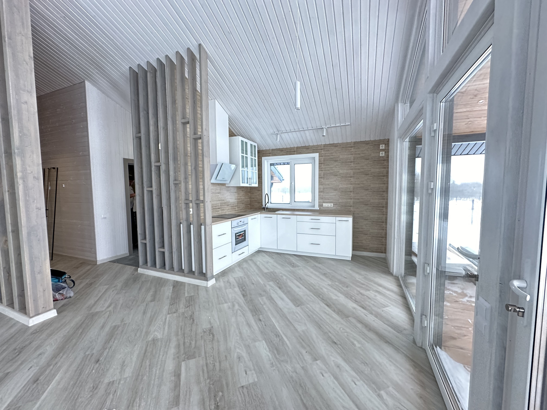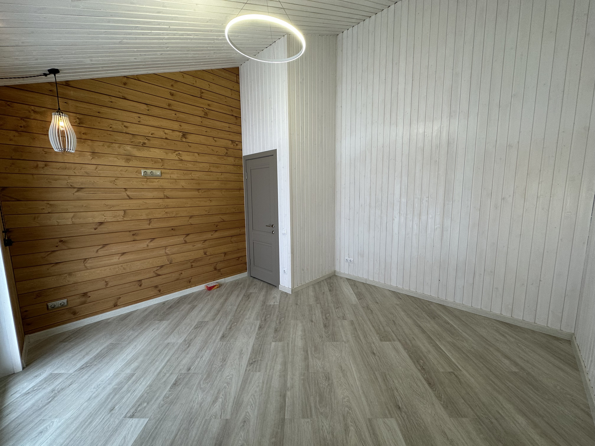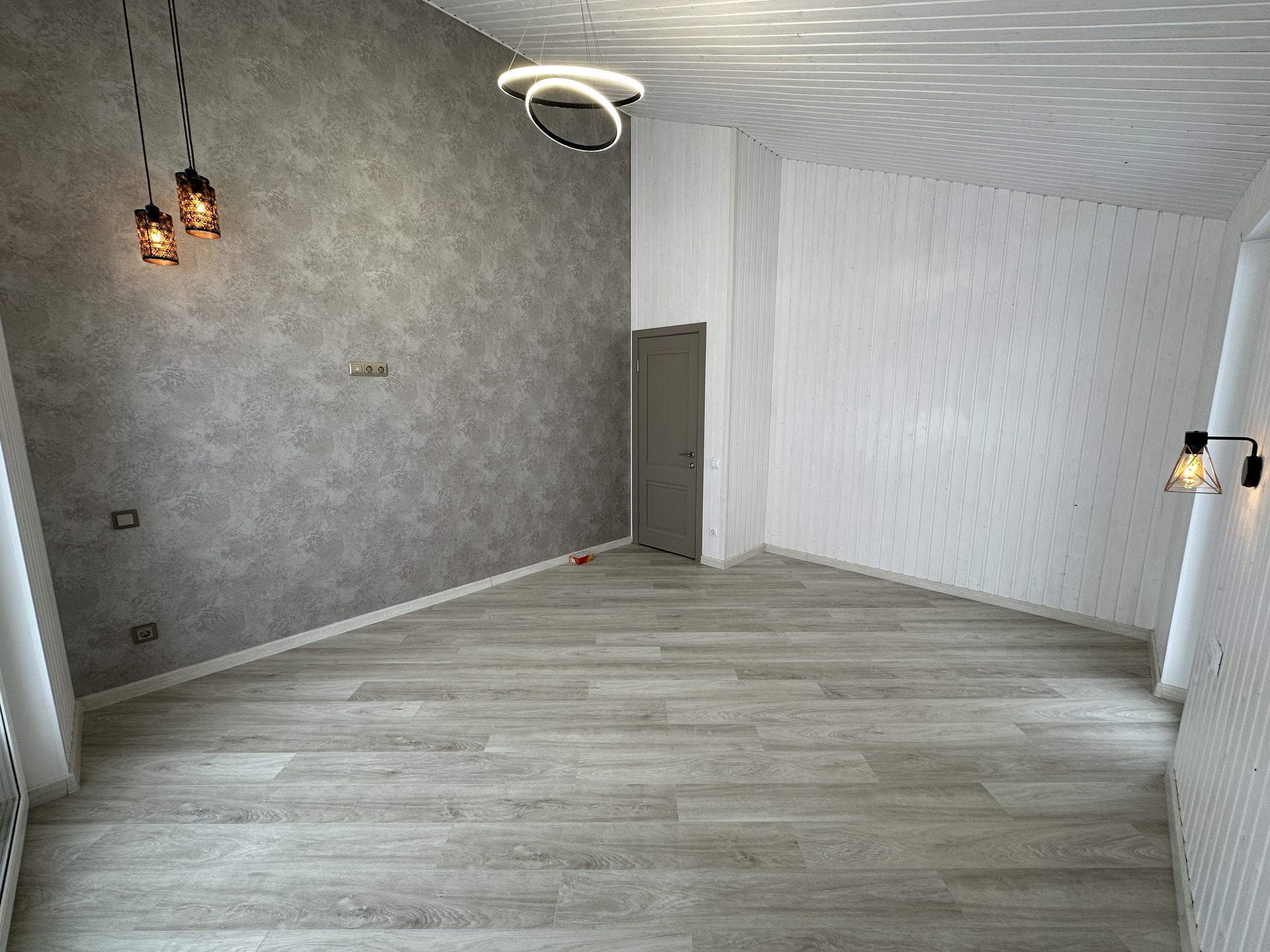На полах кварцвиниловый ламинат 44класса одним полотном, без порогов- надежно, удобно без расширения, ощущения дерева под ногами