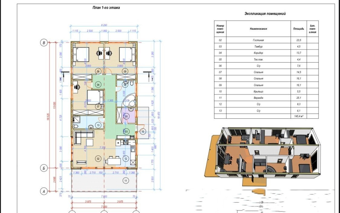Общая площадь дома 145,4 кв.м:
