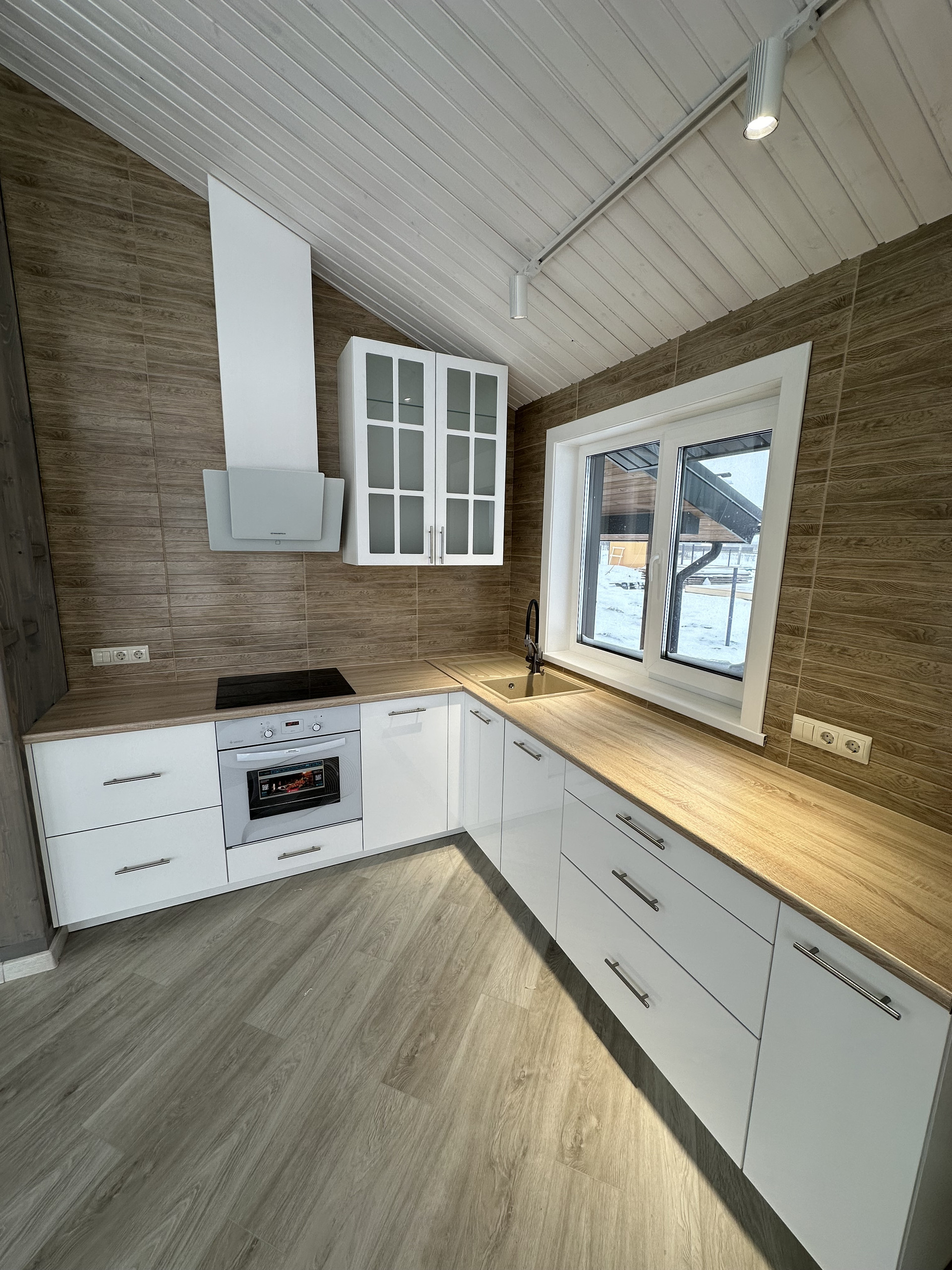 ✔️ Внутренние стены обшиты комбинированно: имитация, вагонка, армированный гипсокартон, плитка керамическая, плитка керамогранит.