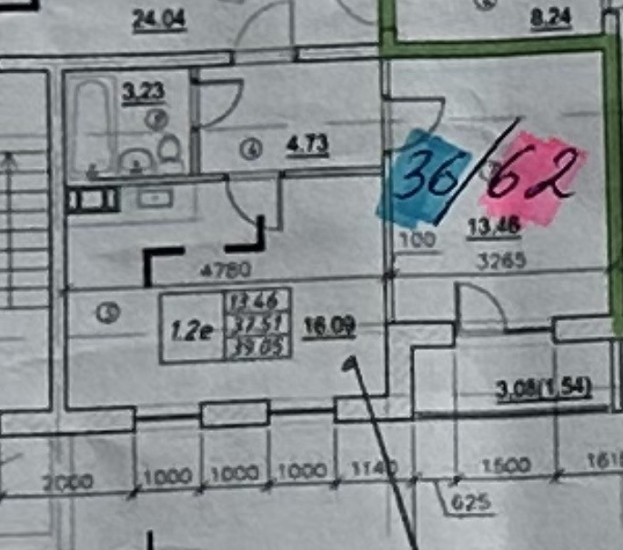 Общая площадь 38.5 м2