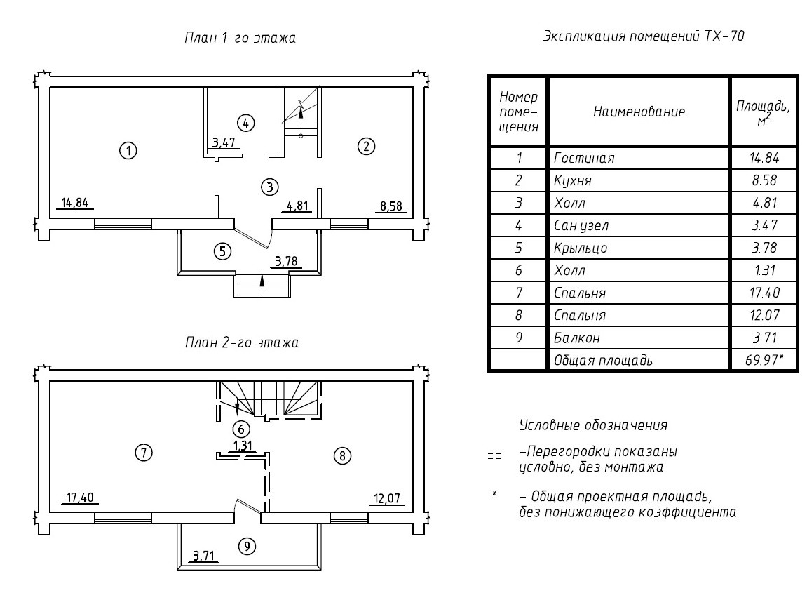 Таунхаус 70,6 м.кв., по адресу: Ленинградская область, Гатчинский муниципальный район, Пудостьское сельское поселение, п. Пудость, пр. Верстовой, уч. 8/8.