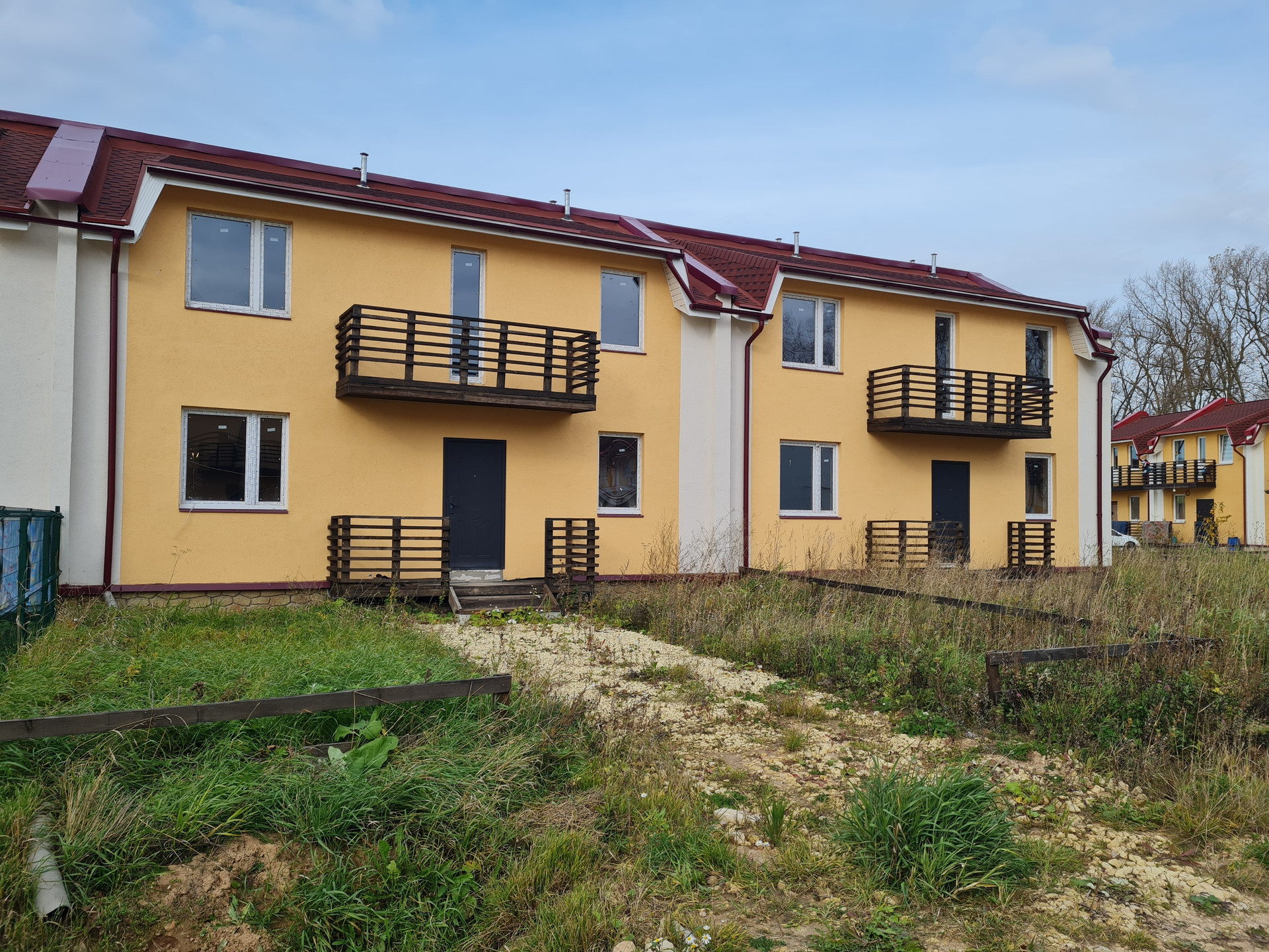 Загородный дом подойдет для дачи или постоянного проживания, из газобетона, 2 этажа, без отделки-возможность все сделать на свой вкус, центральная секция с земельным участком 1,39 сотки. На участке свое парковочное место. Участок огорожен деревянным заборчиком.