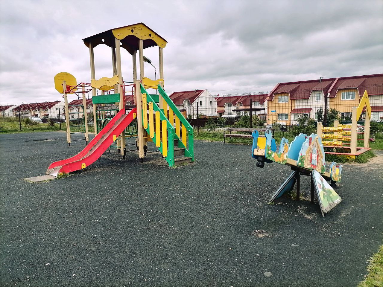 - Участок: Личный участок с газоном и яблонями.