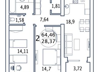 Общая площадь: 64.2 м2