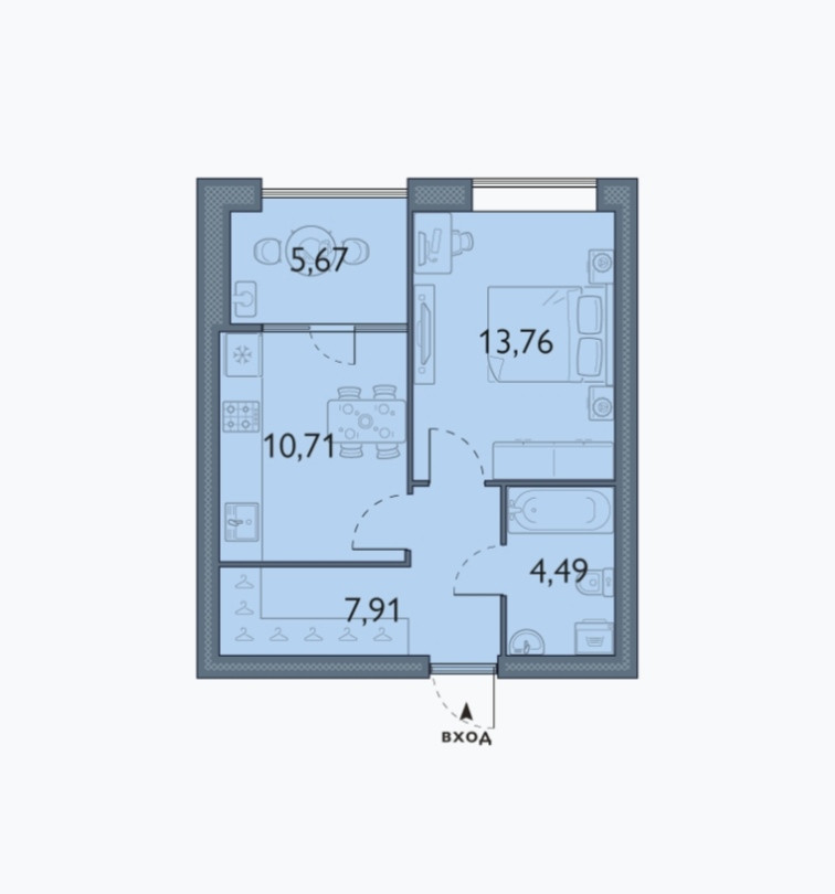 *Расстановка мебели на плане квартиры приведена в реальных масштабах.