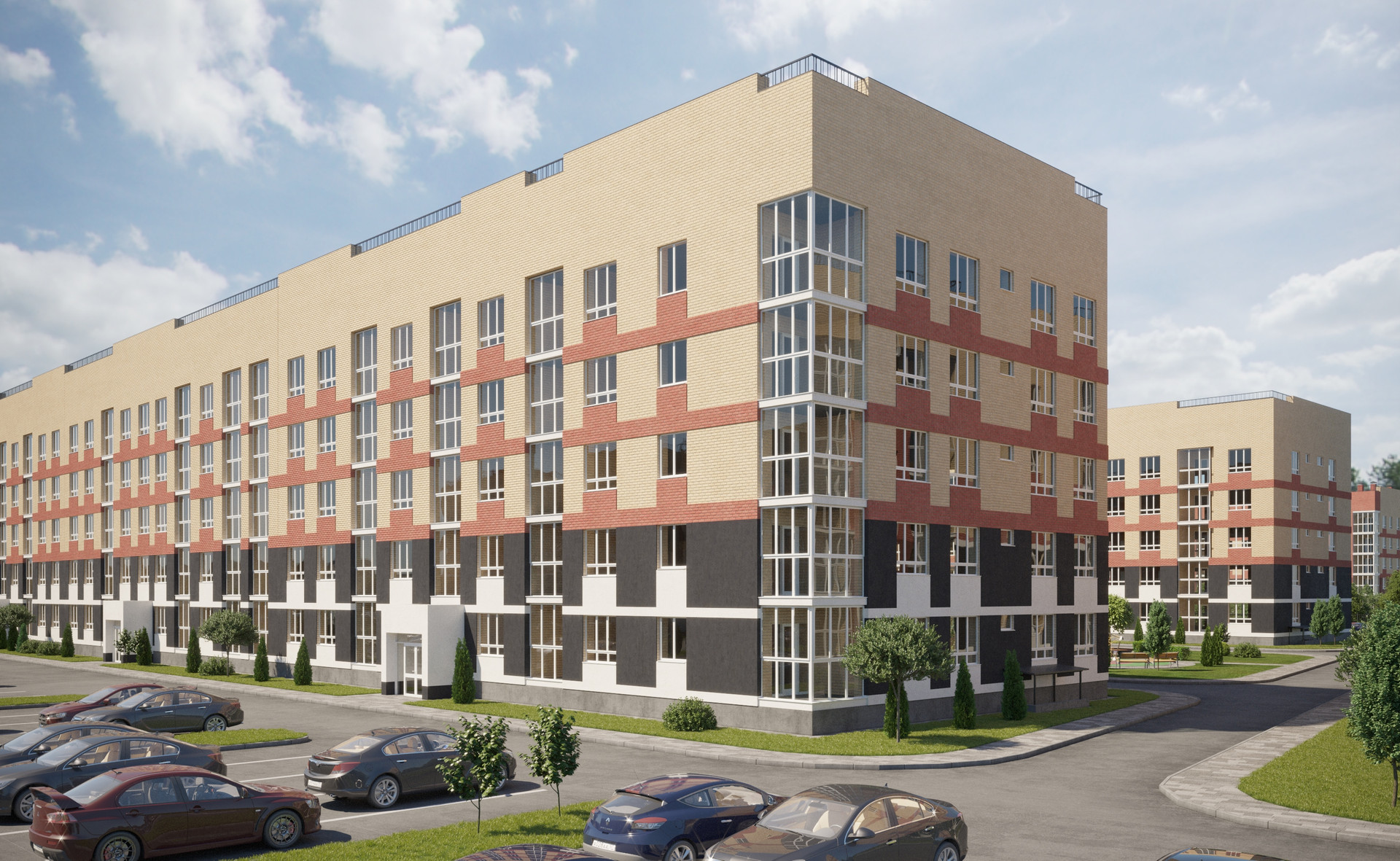 Огороженная парковка с внешней стороны дома, с количеством машиномест по количеству квартир