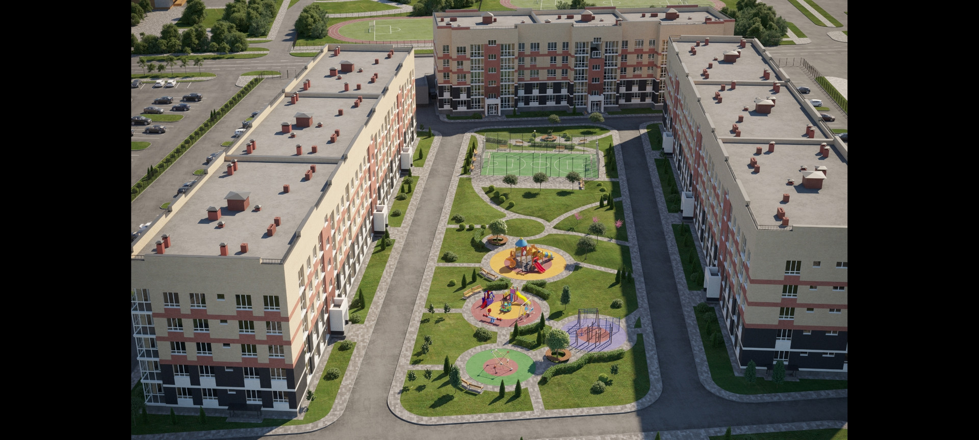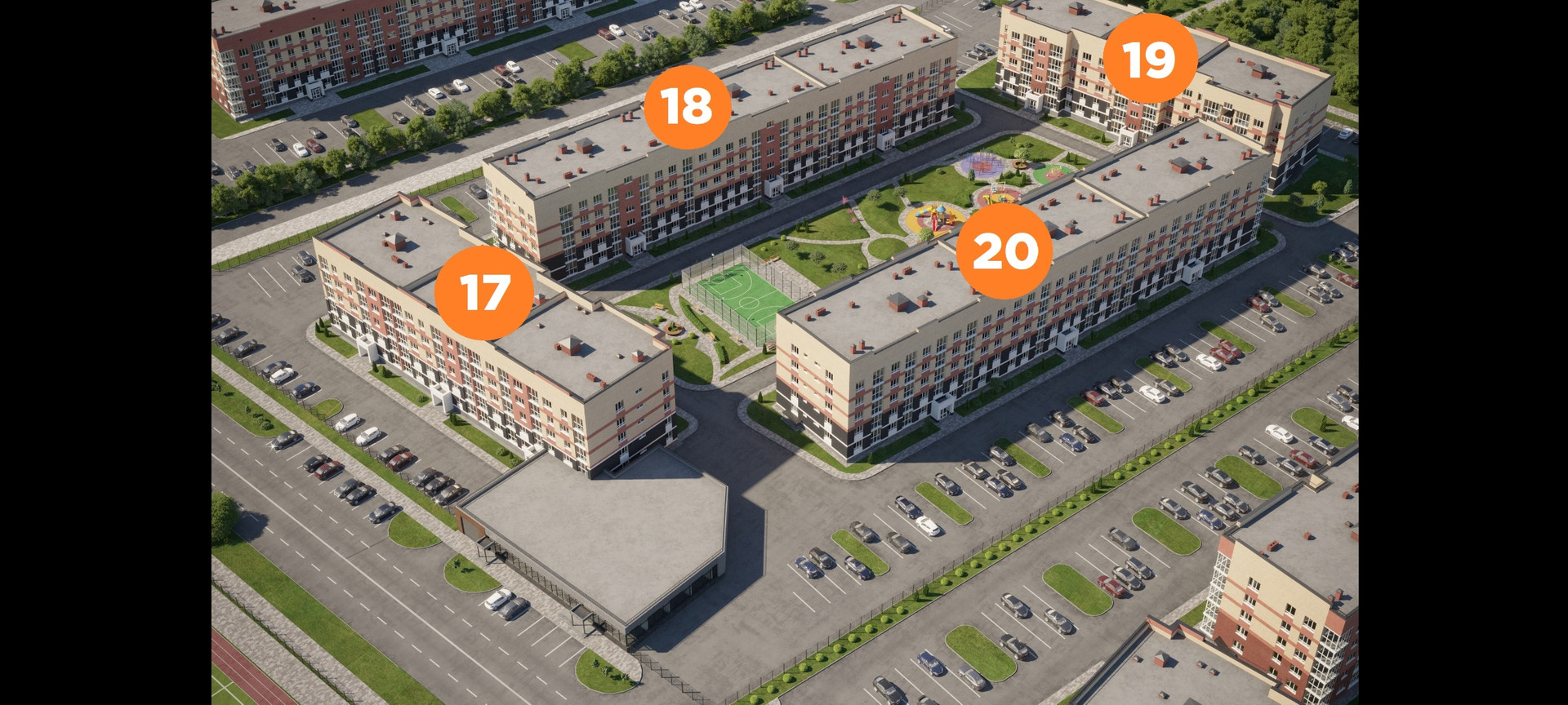 Предусмотрены: 3 детских сада (первый введен в эксплуатацию), школа, спортивный комплекс с бассейном, медицинский центр, торговый и торгово-развлекательный центры, магазины пошаговой доступности. Близость к природе, парки и скверы более 7 Га, пешеходные зоны. На территории пункт полиции и пункт охраны.